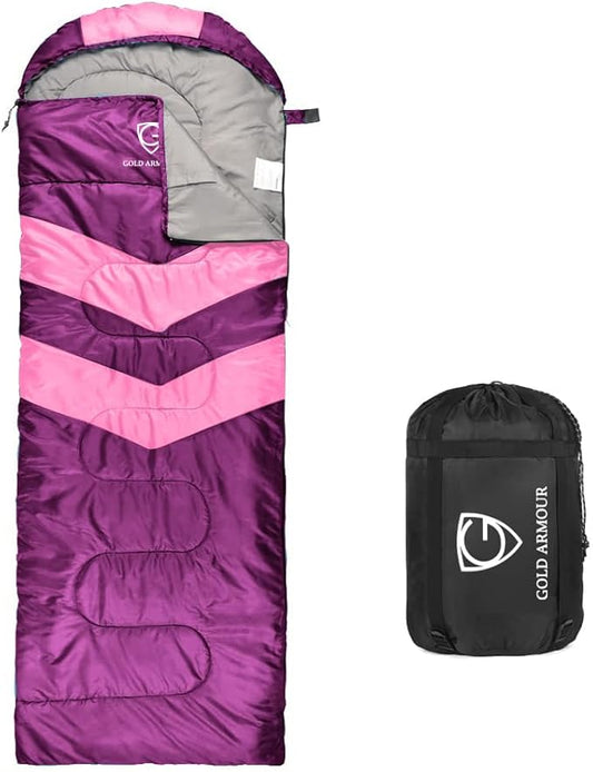 Gold Armour Sleeping Bags for Adults Cold Weather & Warm - Backpacking Camping Sleeping Bag for Kids 10-12, Girls, Boys - Lightweight Compact Camping Essentials Gear Accessories, Left Zipper