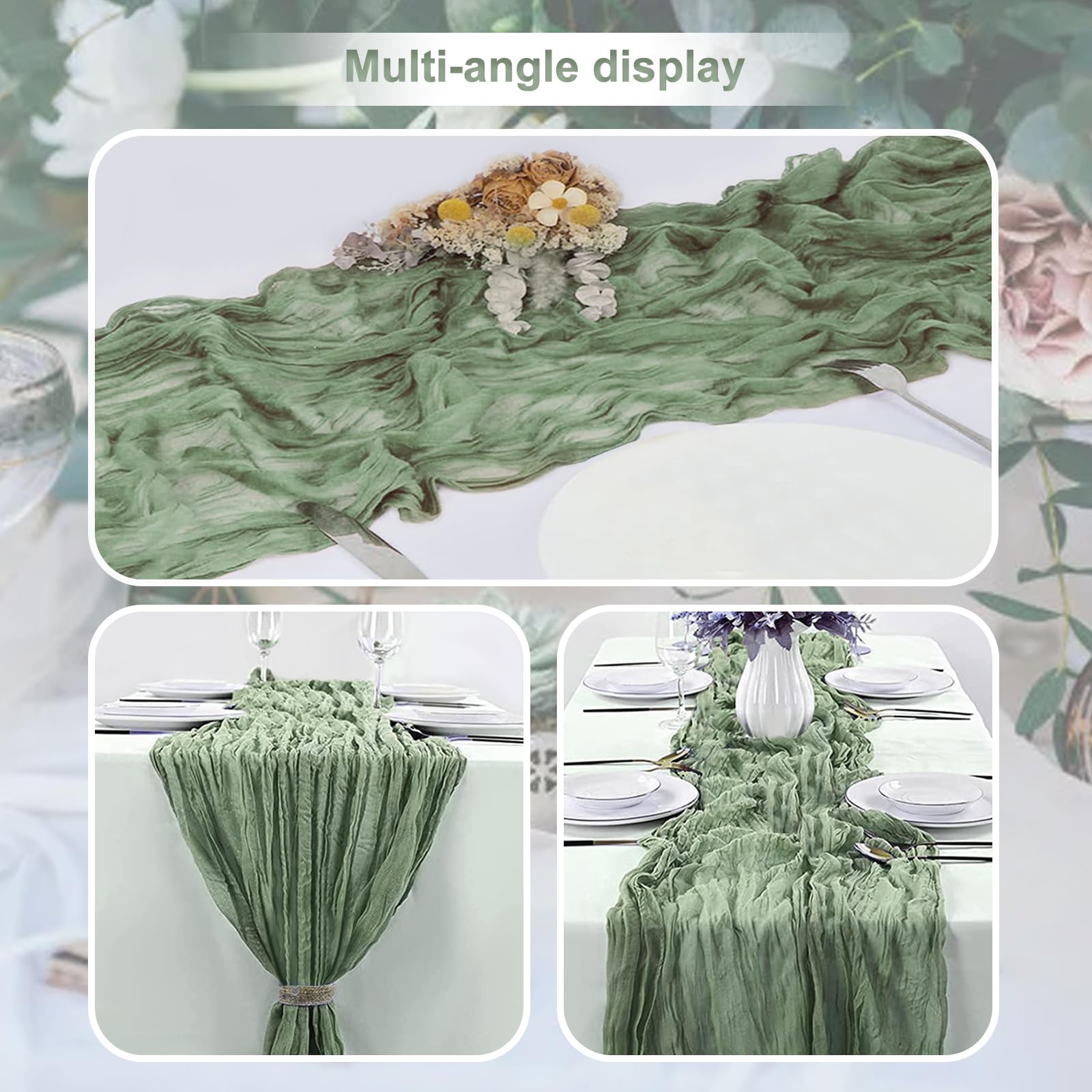 - Premium Materials: Our table runners are crafted from high-quality cheesecloth and gauze. The sage green cheesecloth table runner has good softness and breathability, while the gauze table runner offers a delicate and elegant texture. These materials are carefully selected to ensure durability and a luxurious feel, making your table look and feel extraordinary.