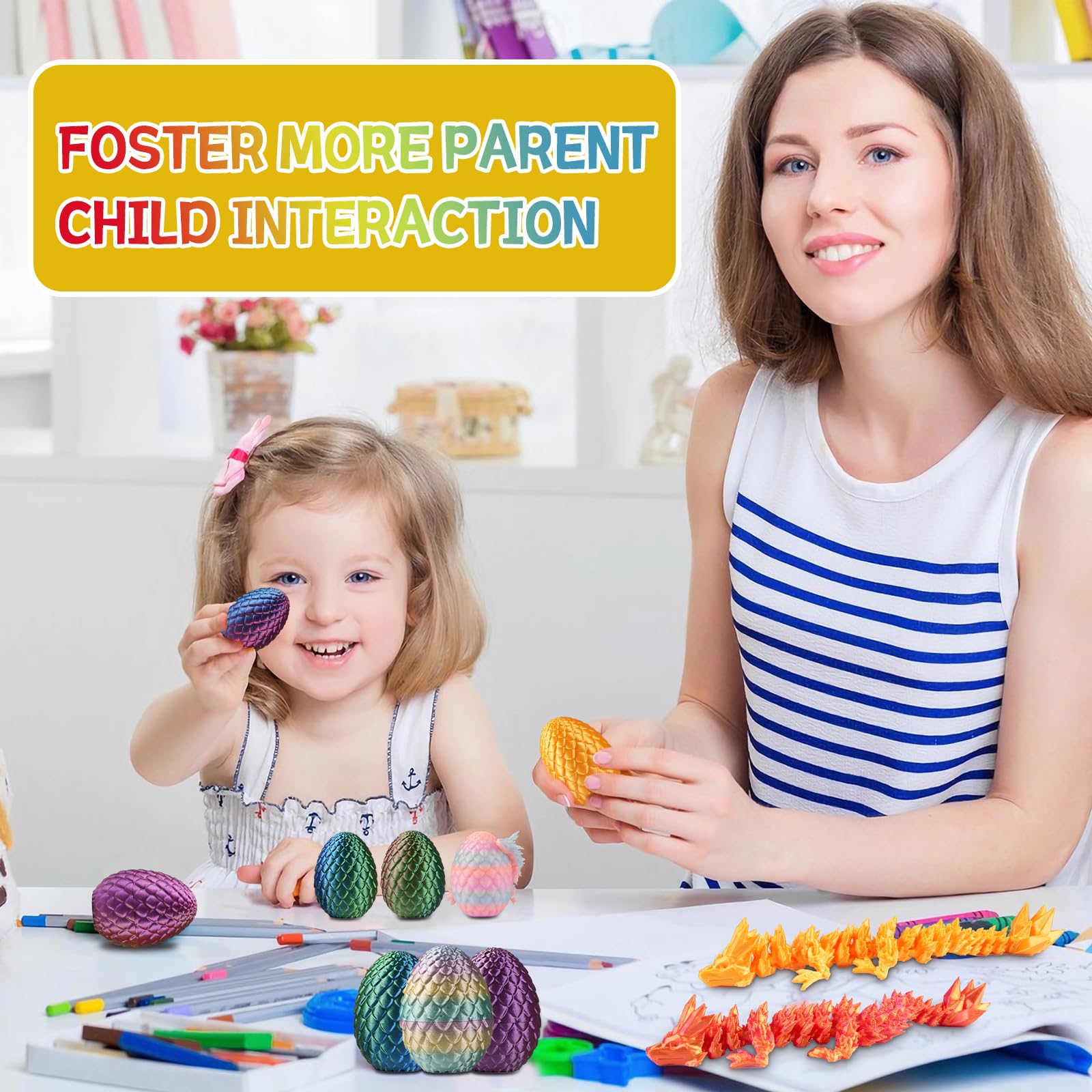 - Exquisite 3D Printed Dragon Egg Set:Each set contains 12 brightly colored 3D printed dragon eggs, each containing a 3D printed dragon with realistic scales and articulated joints. Each dragon is uniquely designed, making it a perfect addition to any collection or decoration.