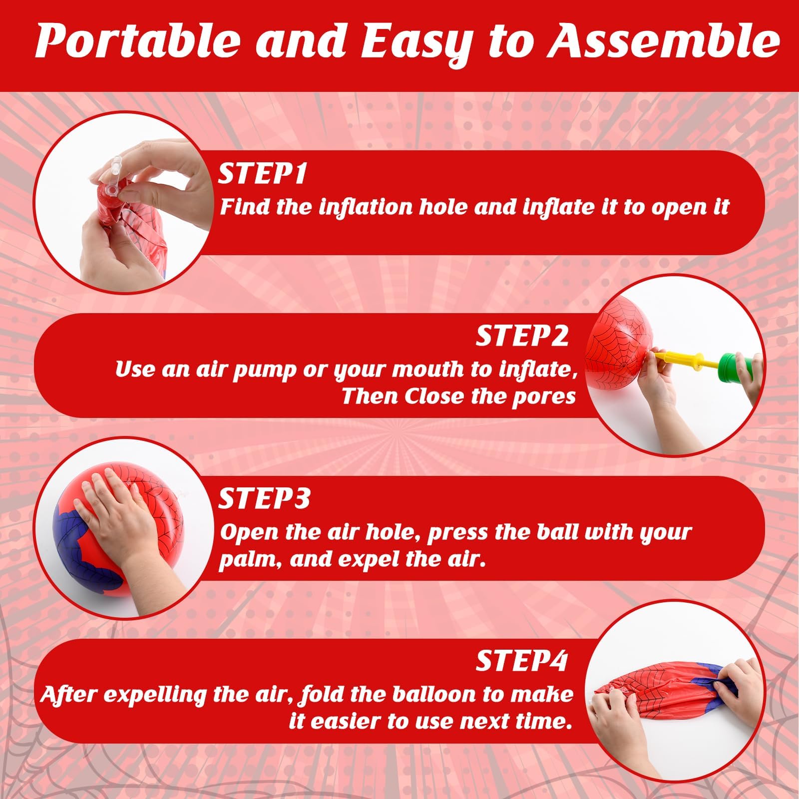 - Spider-Web Designs & Premium PVC Material Crafted , puncture-resistant PVC, these Beach Balls feature eye-catching red and blue spider-web patterns that thrill superhero fans! Ideal for Spider birthday decorations, themed parties, or adding a playful touch to summer pool days.