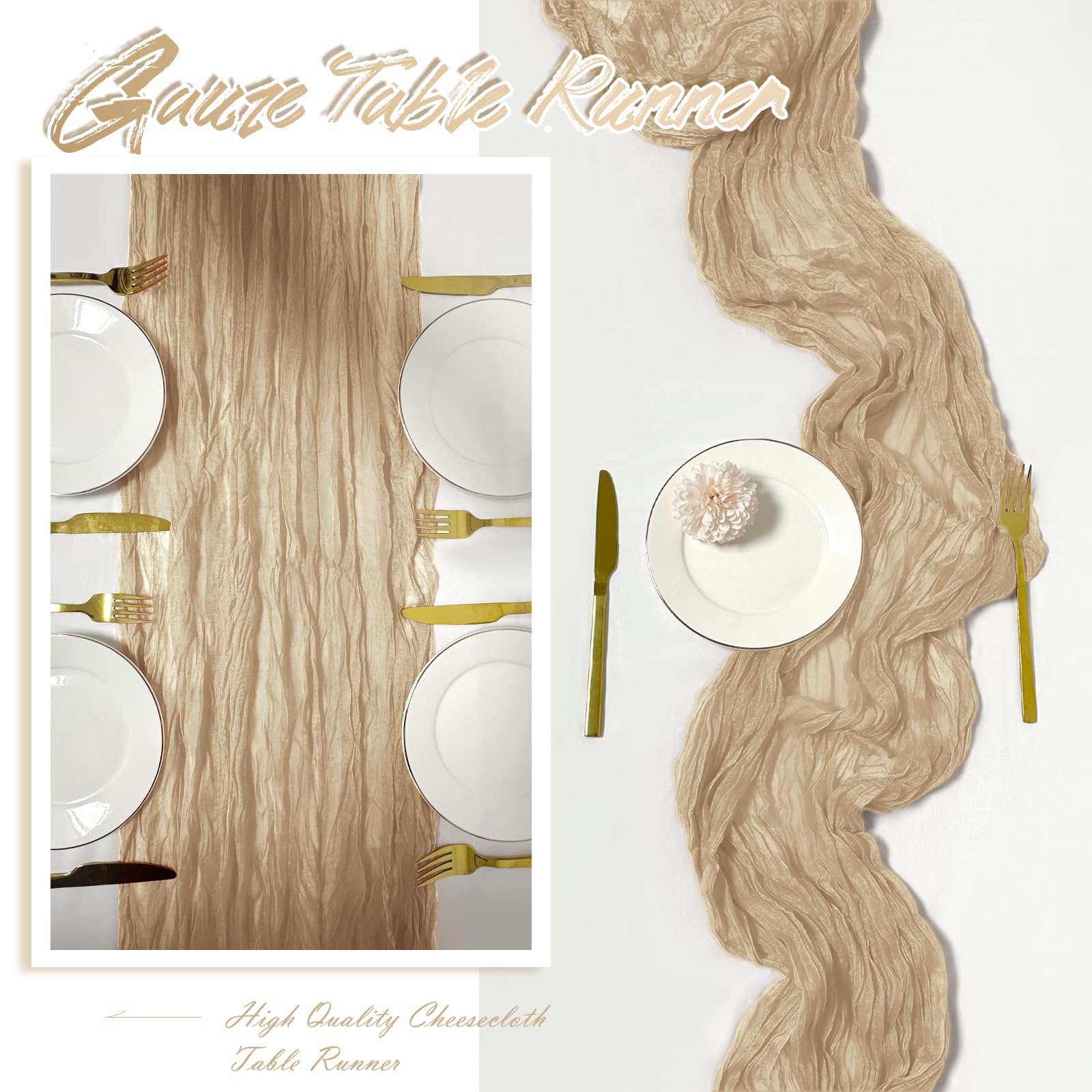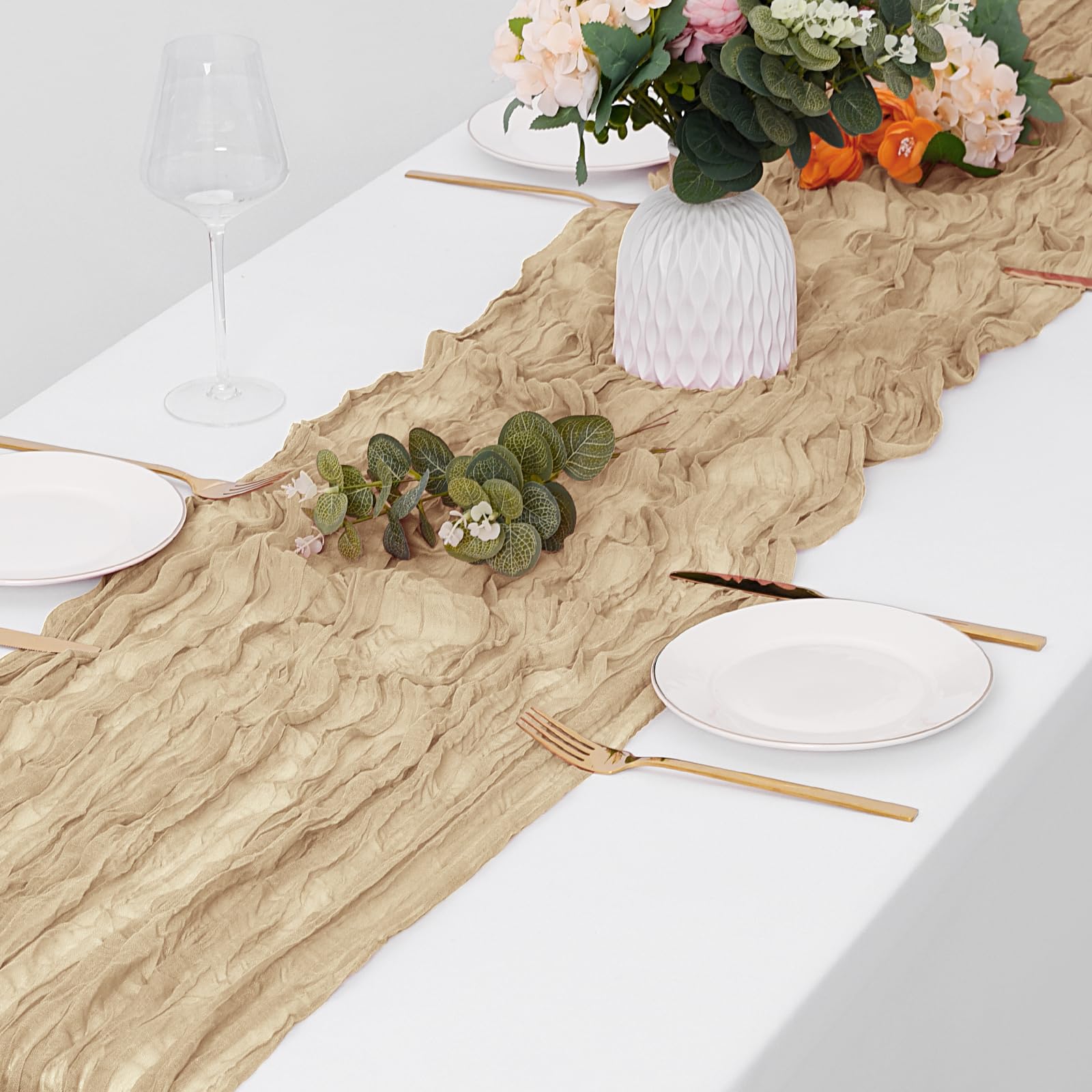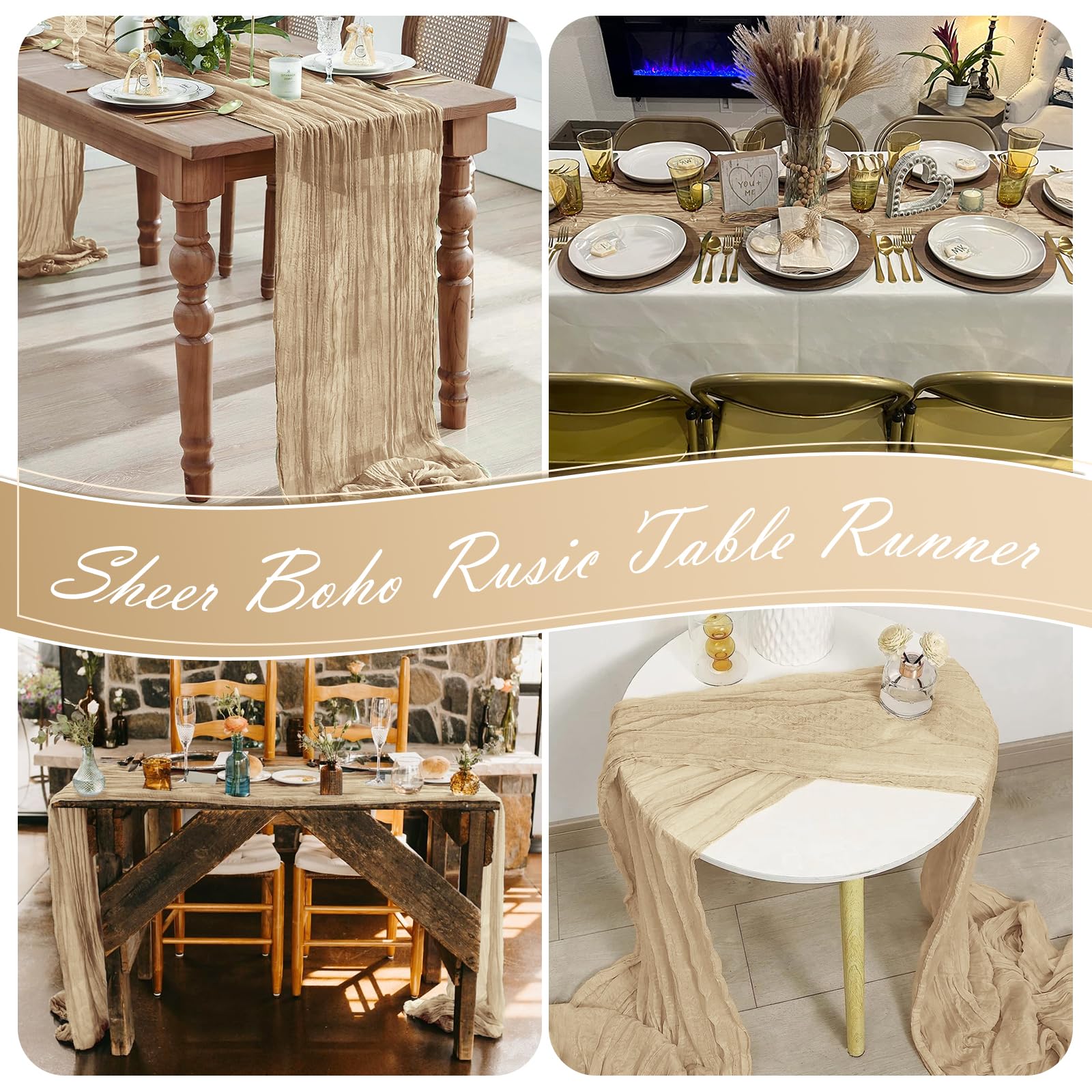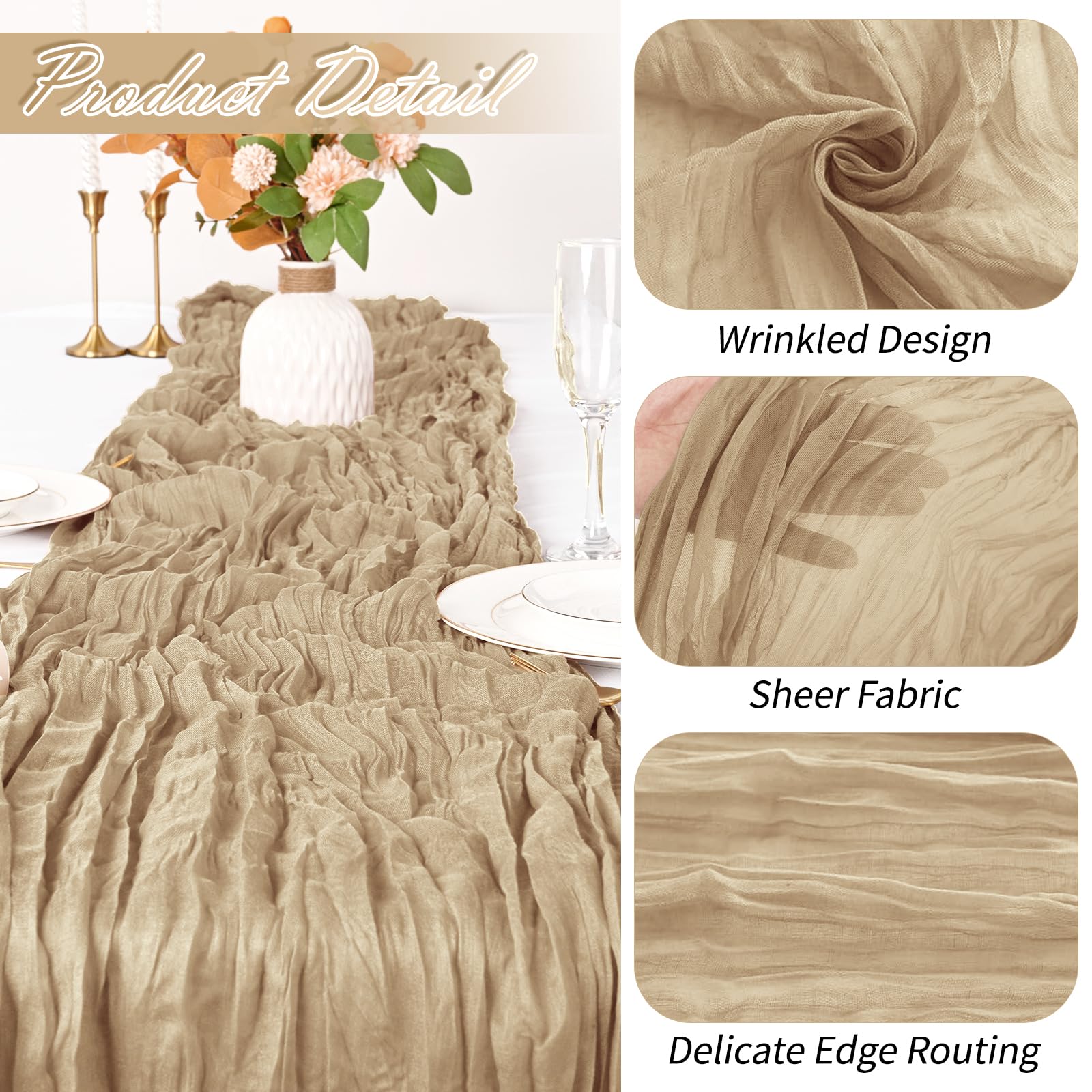 - Premium Material: Our cheese cloth table runners are made from premium gauze table runner and crinkle gauze fabric. The beige table runner with beautiful wrinkles, soft to the touch, reusable, washable and fade-resistant. This boho gauze table runner is translucent and drapes naturally, perfectly and elegantly placed on a table or hung from the floor