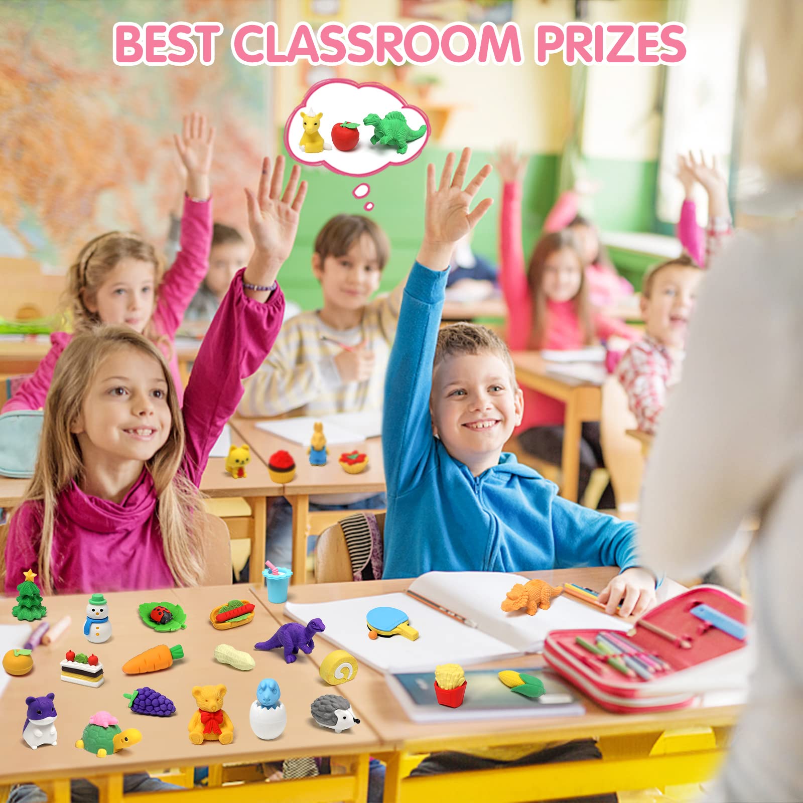 - FUN AND EDUCATIONAL: Best eraser kids toys for kids to promote hand-eye coordination, recognize all kinds of animals, food, sport and more, inspire kid's imagination and creativity. Prize box toys for kids classroom teacher must haves, enjoy hours of fun with pencil erasers, make new friends in group play activities, Happy manipulative play