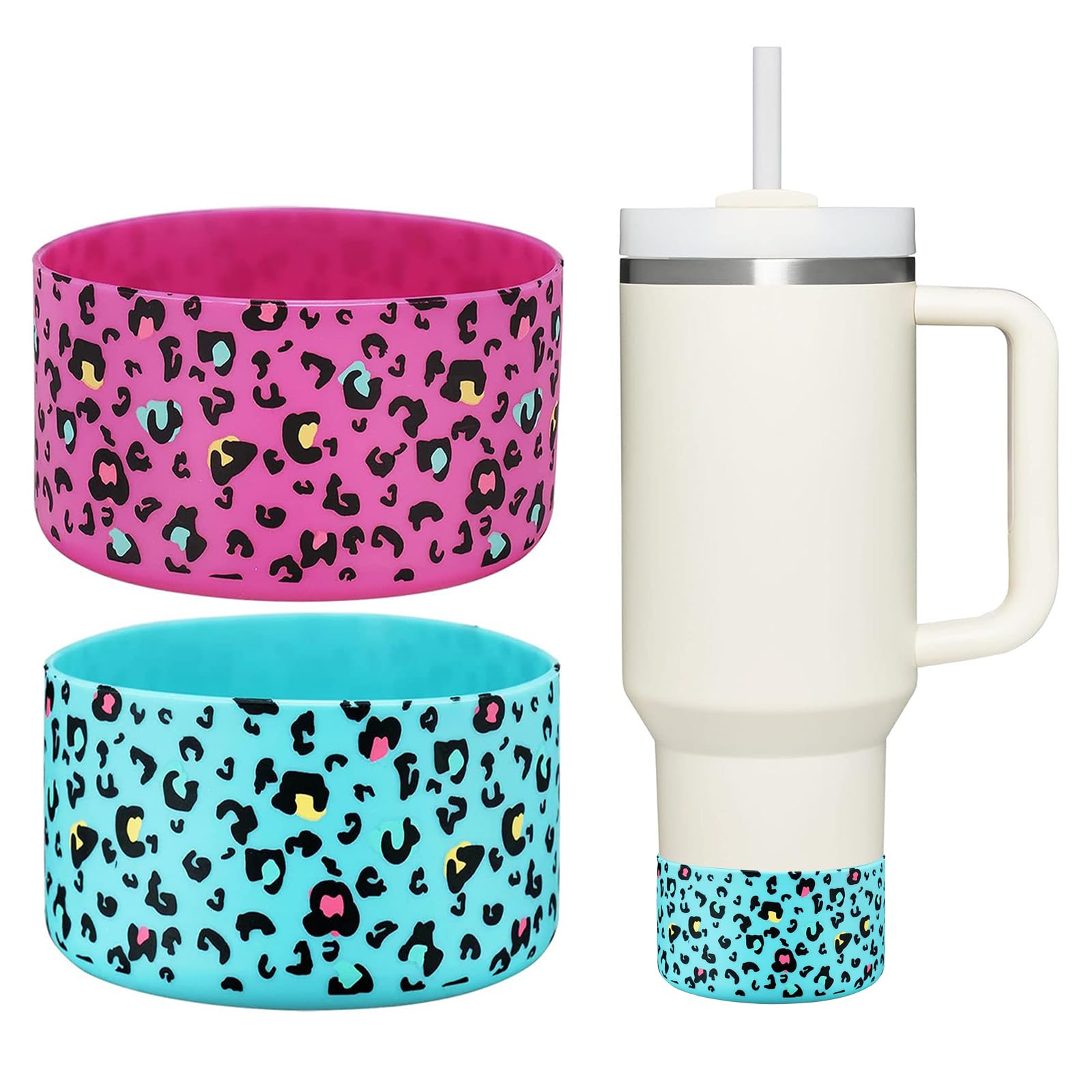 2 Pcs Tumbler Bottom Protector Boot for Stanley Quencher Adventure 40oz & Stanley IceFlow 20oz 30oz and Compatible with Hydro Flask Water Bottle 12oz 21oz 24oz Stealth Landing (Green/carnation leo)