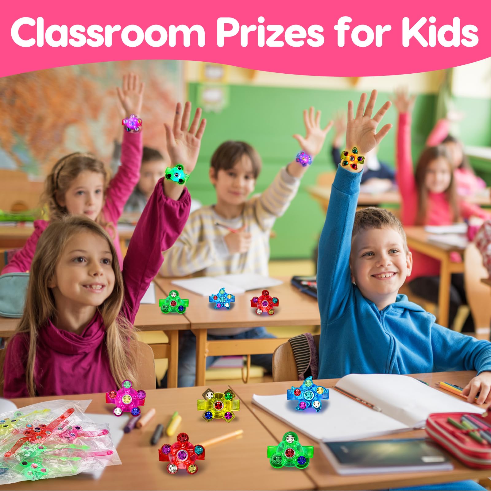 - 【Multipurpose Bulk Toys】LED light up fidget spinner bracelets can be a hit on your lighting party favors for both boys and girls. Perfect for birthday party favors for kids 4-8 6-8, kids goodie bag stuffers, return gifts for birthday party, treasure chest toys, carnival prizes, student gifts from teacher bulk, prize bin toys for classroom, bulk toys for kids prizes, Valentine goody bag stuffers for kids classroom, Easter egg fillers, Easter basket stuffer.