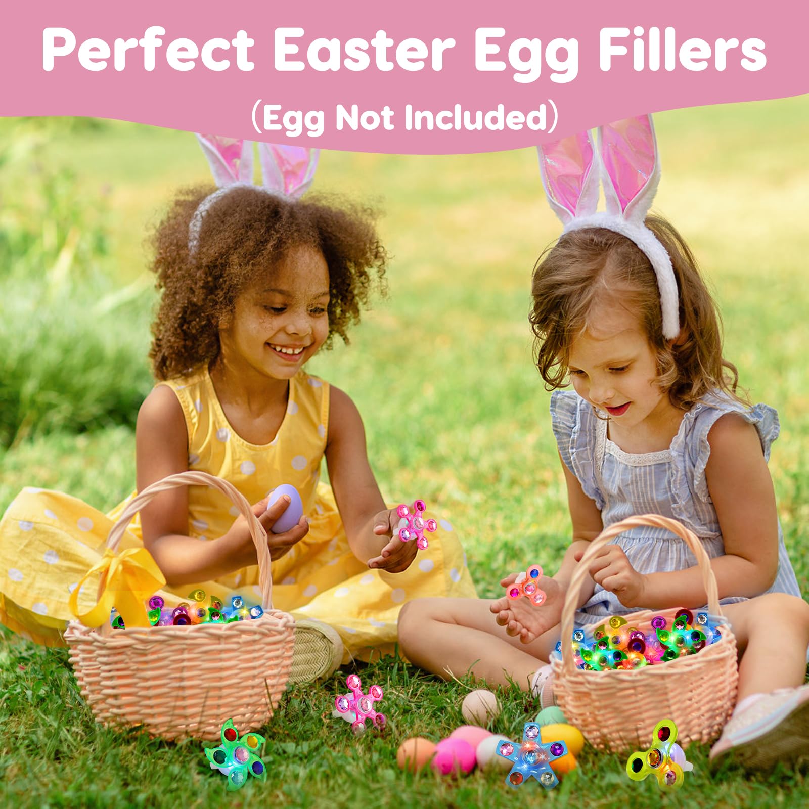 - [24pcs Kids Birthday Party Favors] Our toddler party favors include 24pcs LED light up fidget spinning rings with bright gems and different shapes(deliver randomly). Each ring is individually wrapped, perfect for halloween christmas valentines easter day gifts, easter egg fillers, glowing party supplies, return gifts for party, carnival prizes, classroom prizes, pinata filler, christmas stocking stuffers and more. Ideal light up party favors for kids 3-5 4-8 8-12, graduation party favors, welcome back to school gifts for students, back to school teacher gifts for kids.