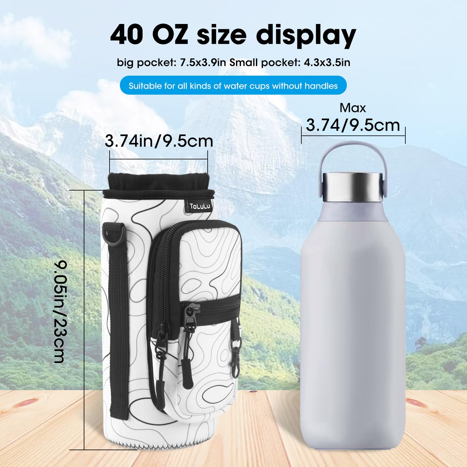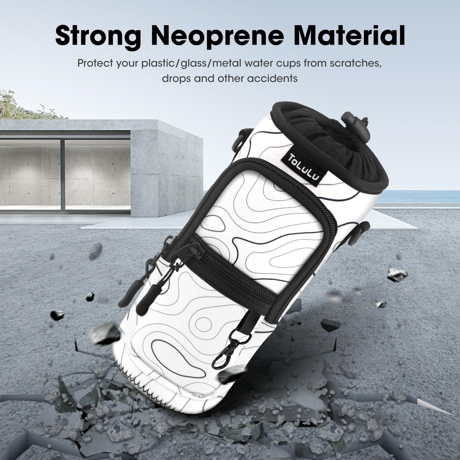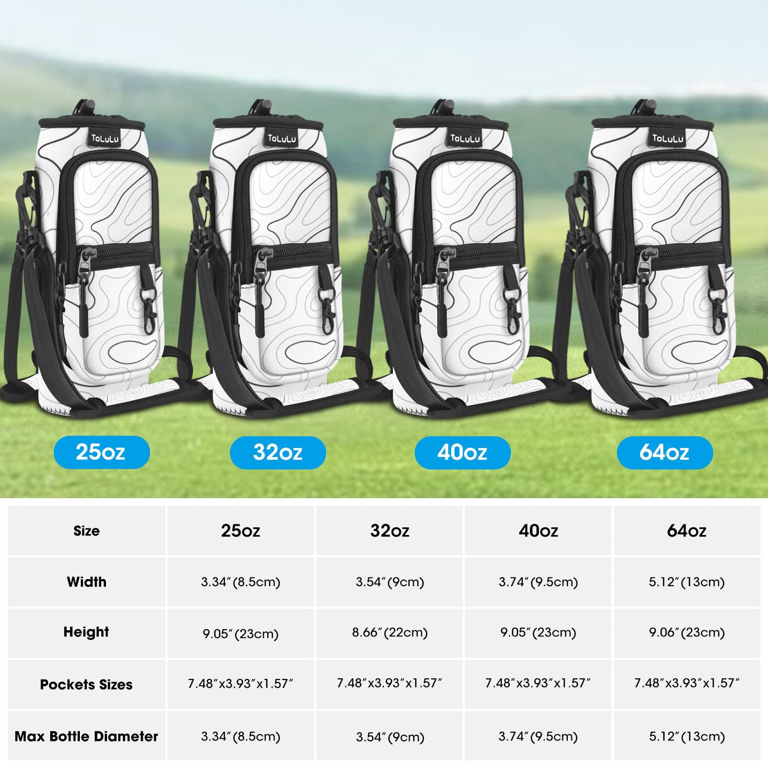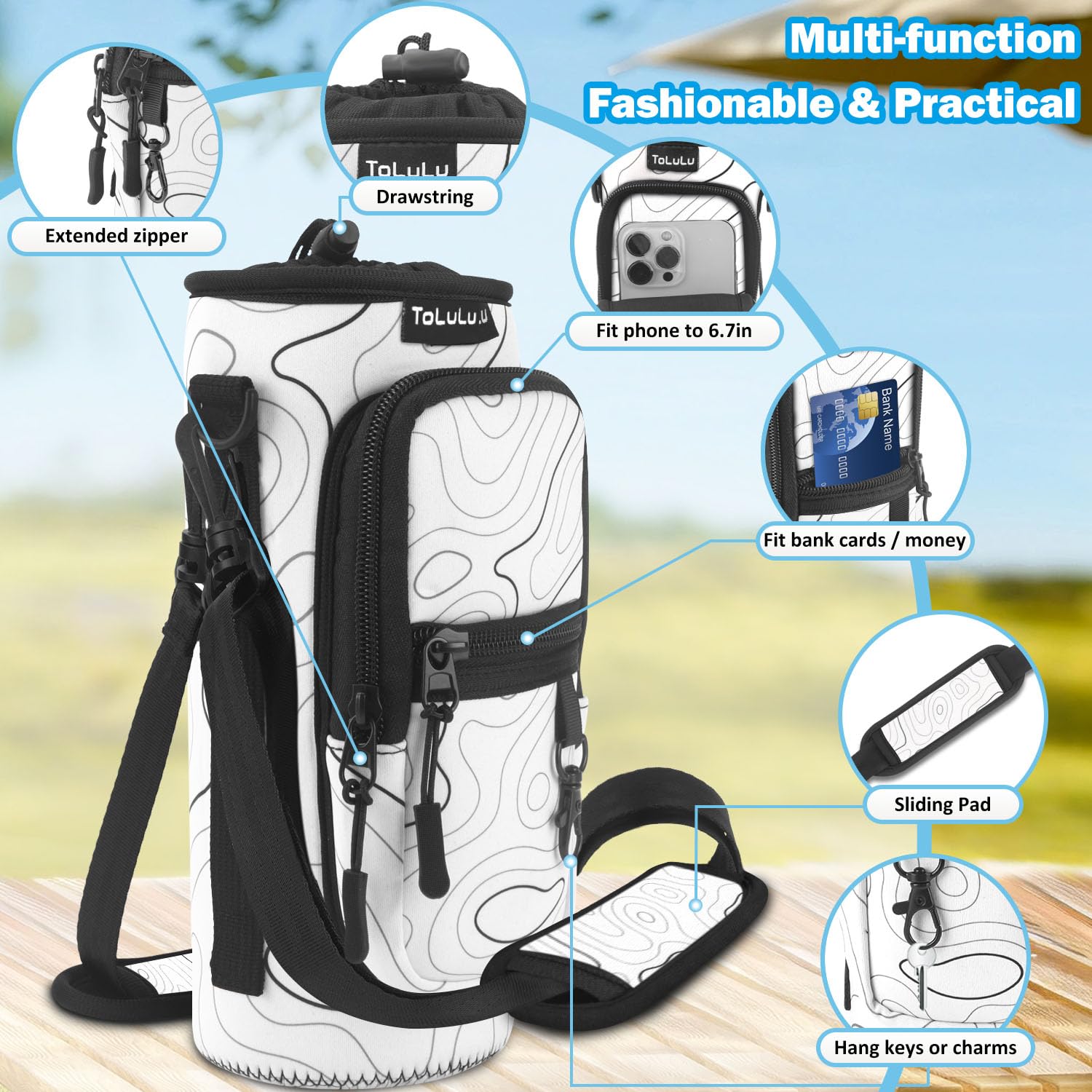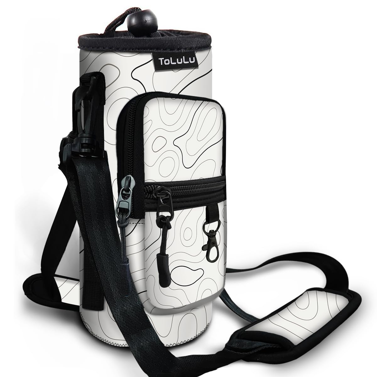 25/32/40oz Water Bottle Carrier Bag Pocket, Crossbody Insulated Neoprene Adjustable Shoulder Strap Water Bottle Pouch Case, Water Bottle Holder Sling Sleeve for Walking Hiking Travelling, Arts White