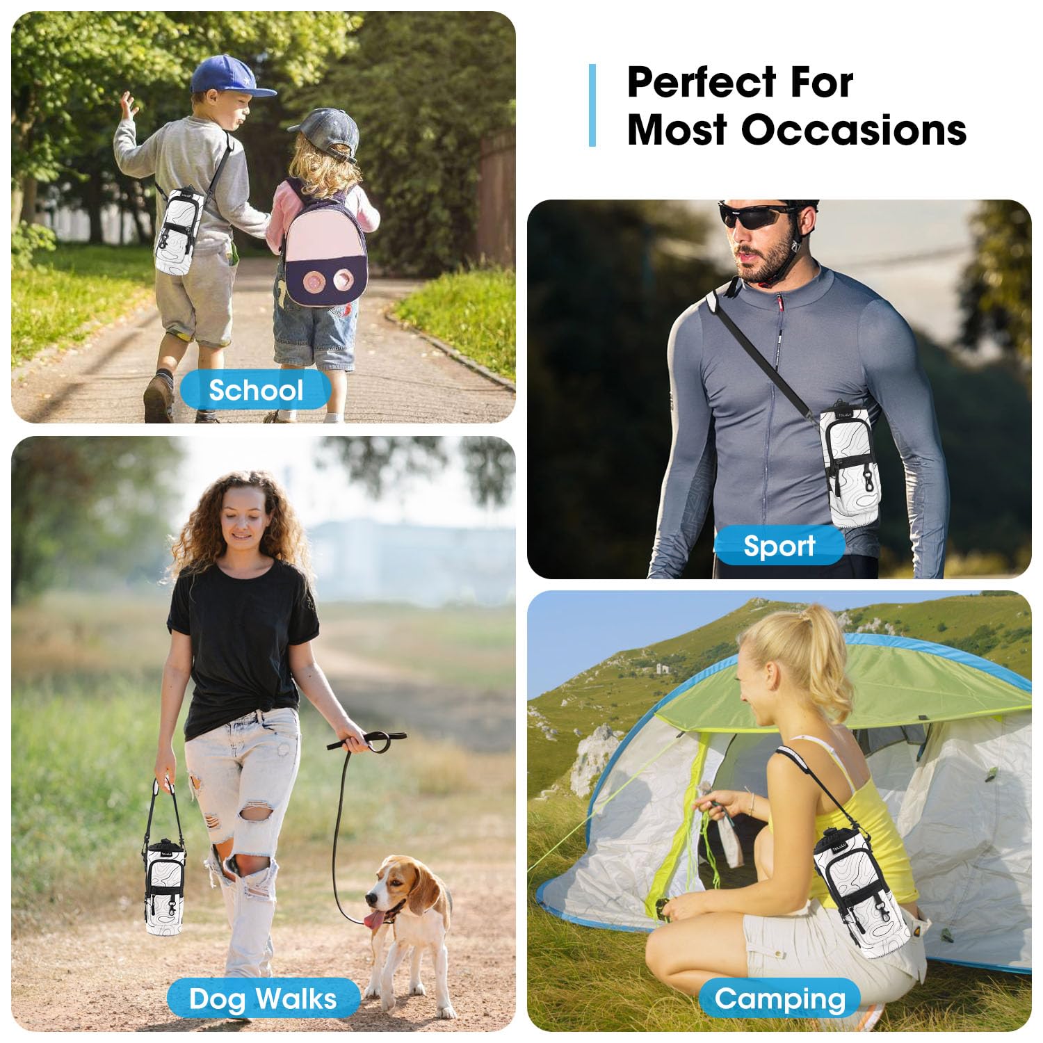 - 【Wide Use & Great Gift】The Fashionable design water bottle bag is suitable for adults, kids men and women,ideal for walking, jogging, walking the dog, shopping, biking, camping, traveling, going to school, commuting, or even at the beach, gym or sporting events. This water bottle bag makes your cup personalized, brighten up your outdoor activities. It is also a special gift for your friends and families