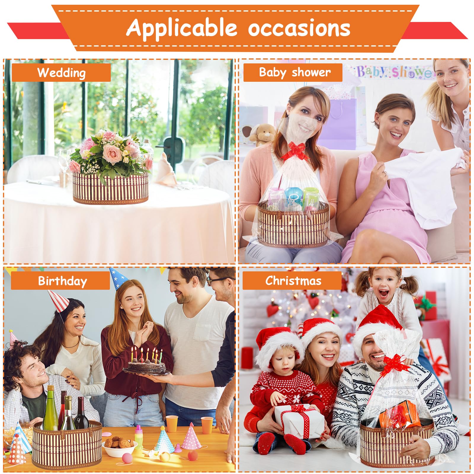 - STURDY MATERIAL: This empty gift baskets to fill is made of high-quality bamboo and wood and can hold up to 10 lbs, so you don't have to worry about gifts falling. The material is non-toxic, safe and environmentally friendly, with strong quality and can be used repeatedly for a long time.