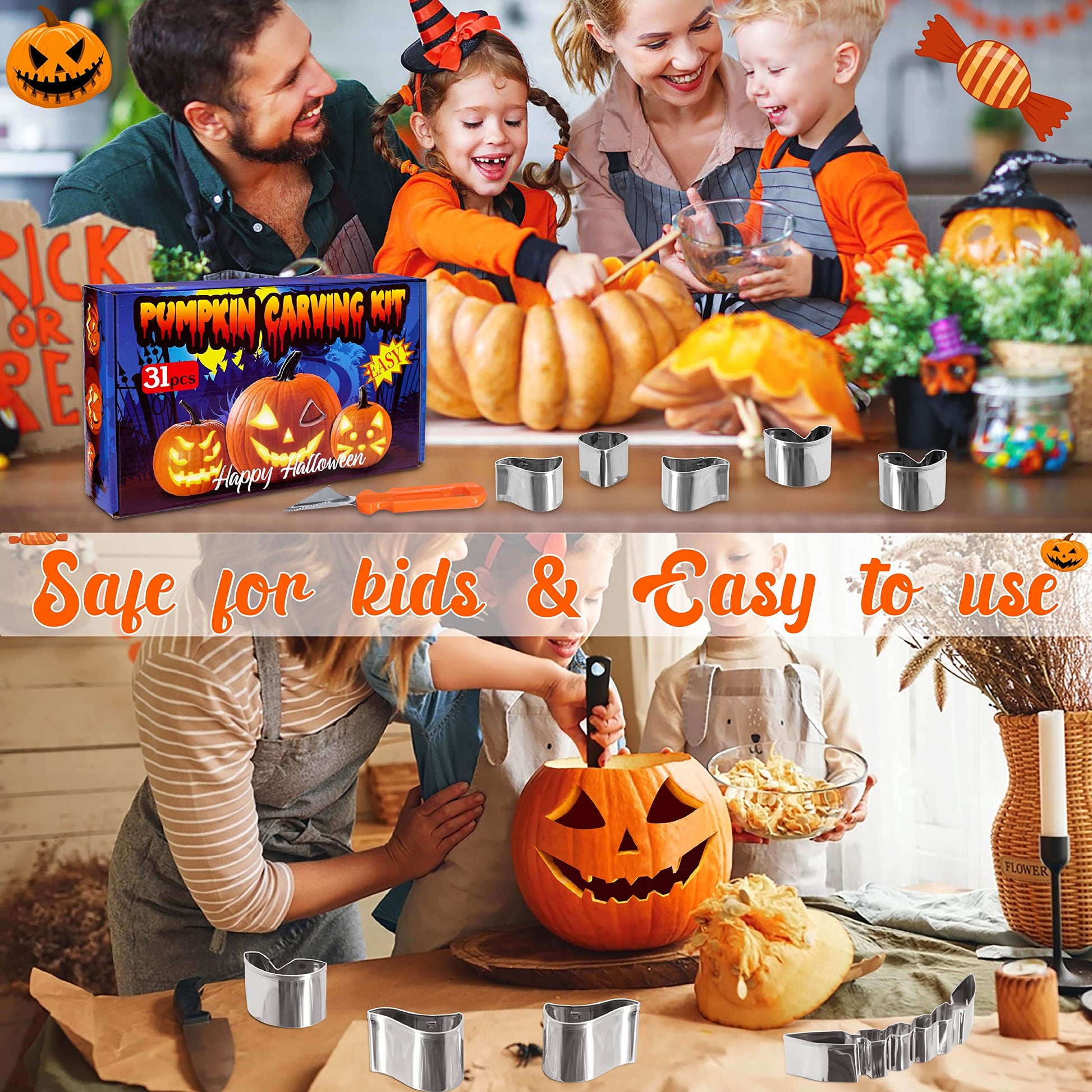 - Pumpkin carving kit for kids:Safer for kids than the old fashioned way of carving a pumpkin;Makes carving pumpkins safe for kids to do independently;Kids can be more involved with carving pumpkins