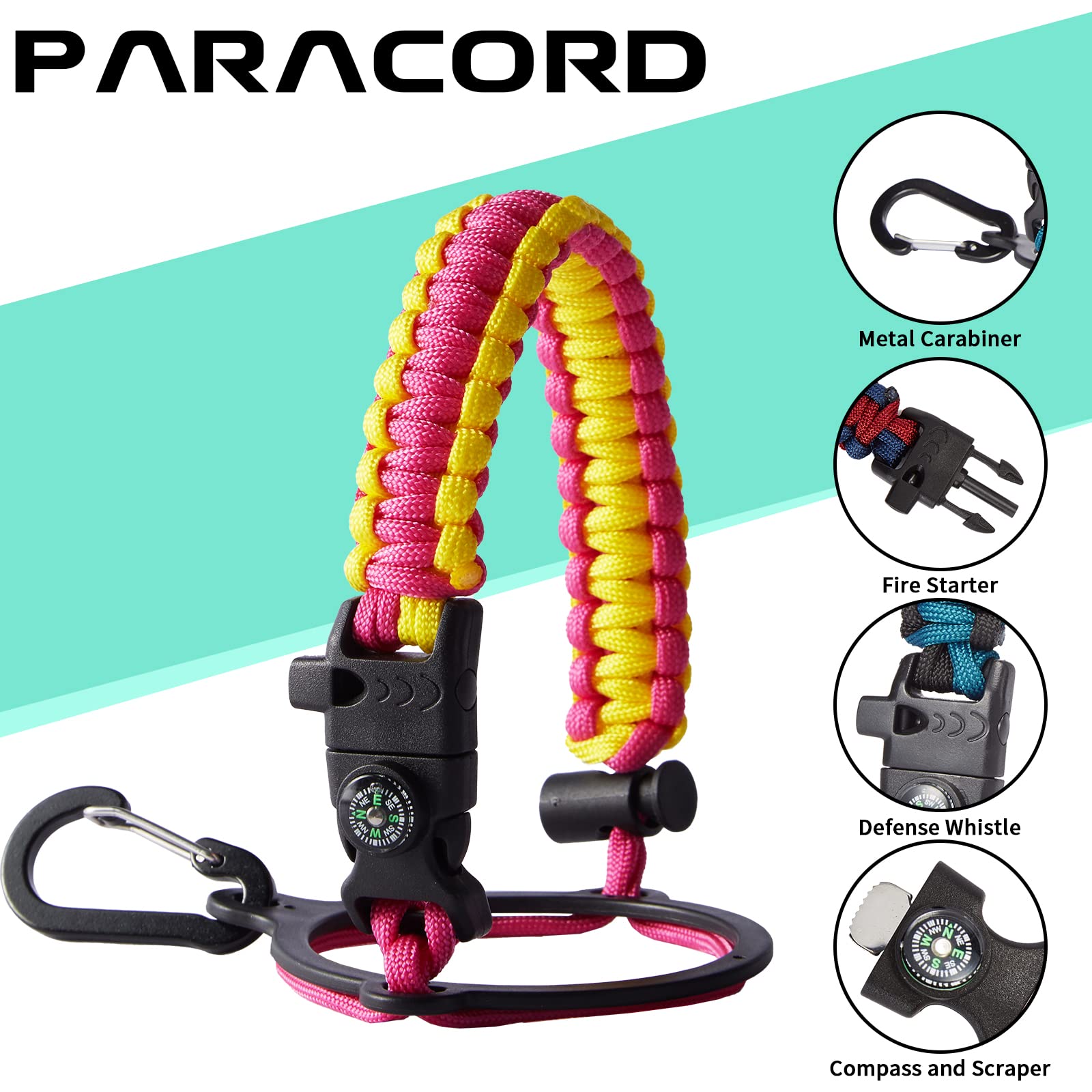 - UNIQUE PARACORD HANDLE: Bright color paracord matches the flask water bottle to give you a youthful vibe while adding a personal style. With a compass, safety loop, metal carabiner, flint, igniter and whistle to become your survival tool, making the 32 oz stainless steel water bottle with paracord an ideal survival kit for expeditions in the wild