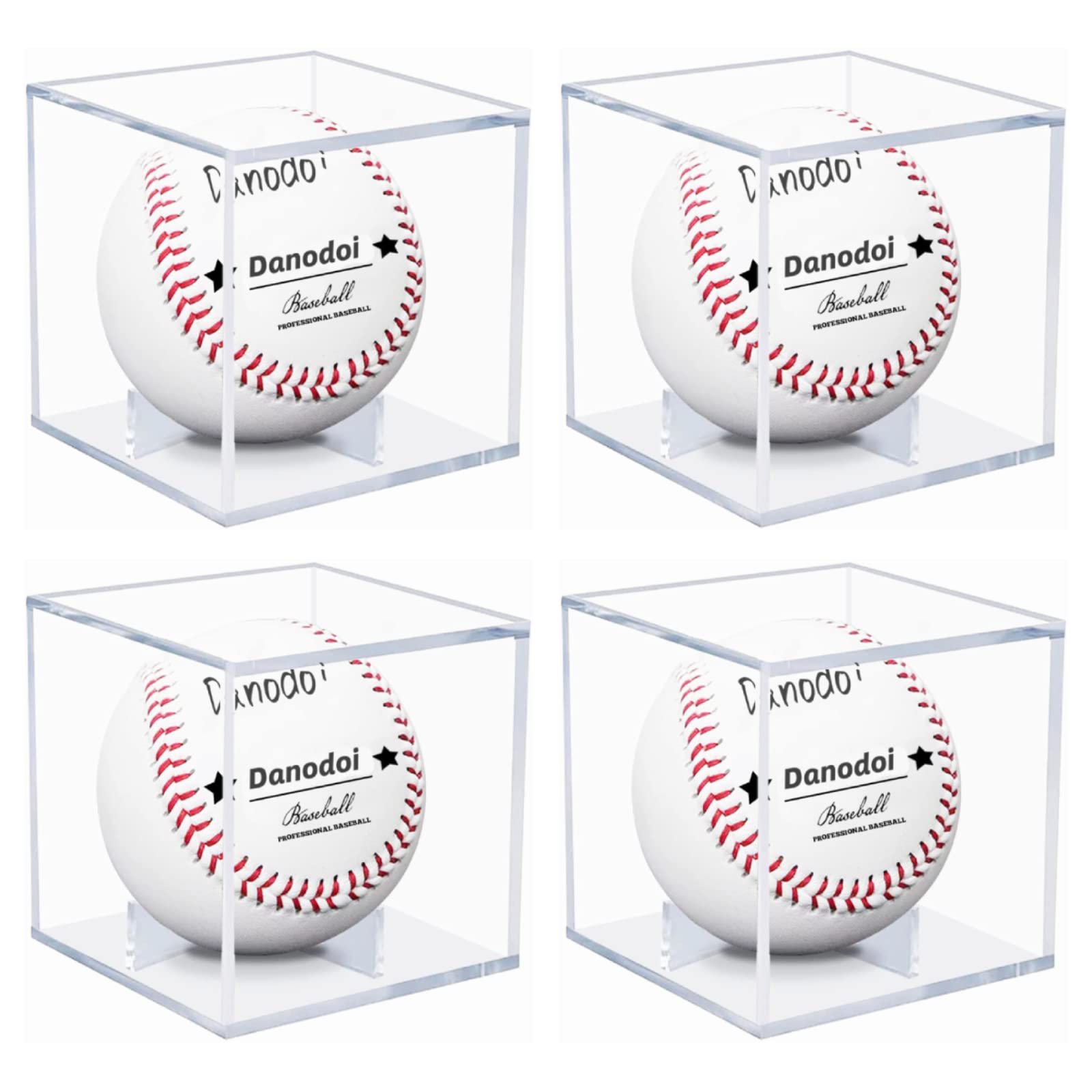 4 Pack Baseball Display Case UV Protected Acrylic Clear Baseball Holder Square Cube Ball Protector Memorabilia Autograph Display Box for Official Size Baseball, Clear