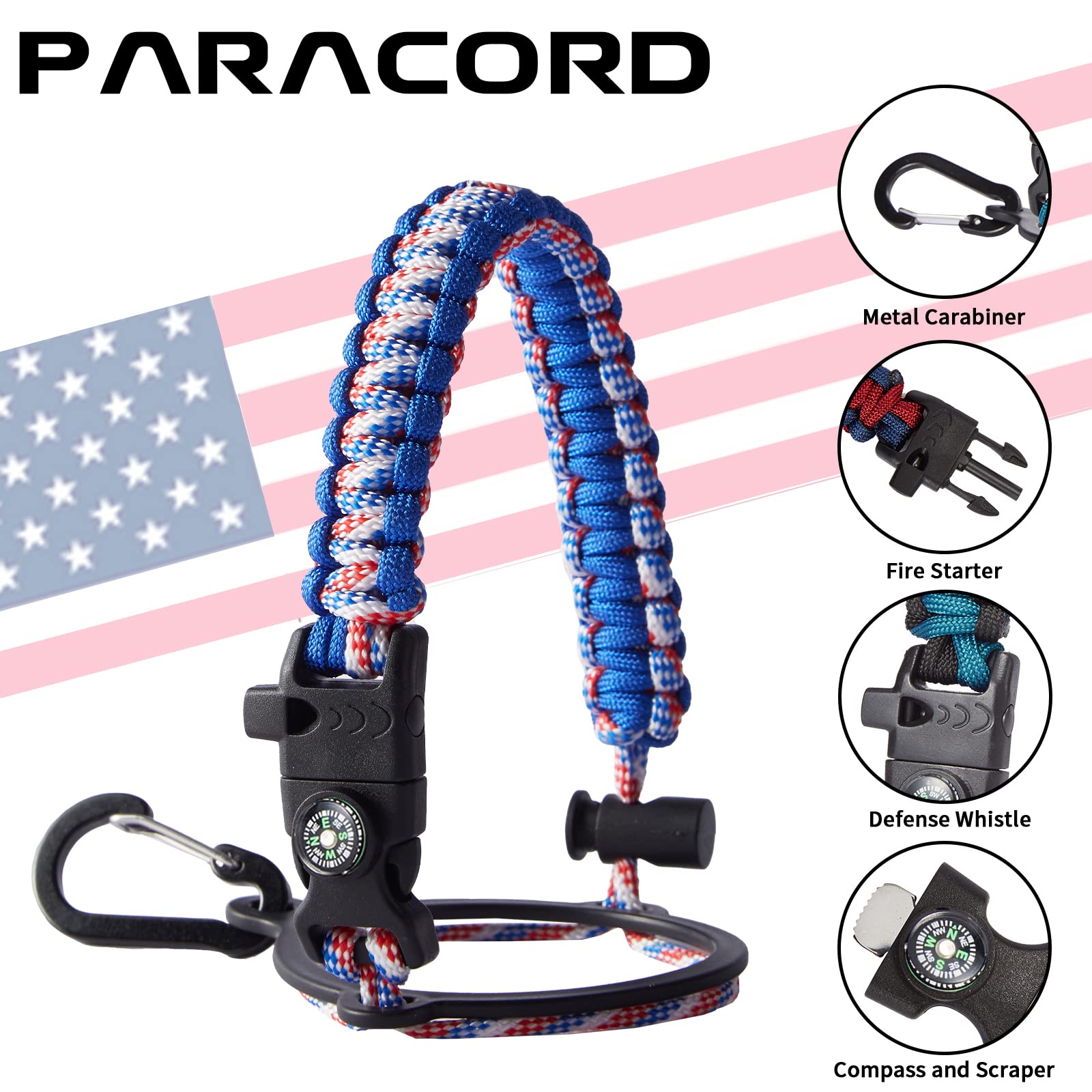 - UNIQUE PARACORD—Perfect Accessories: bright color paracord matches the flask water bottle to give you a youthful vibe while adding a personal style. It comes with a compass, safety loop, metal carabiner, flint, igniter, and whistle to become your survival tool for your wild adventures