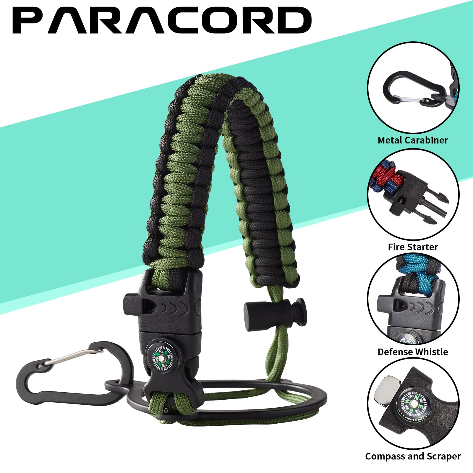 - UNIQUE PARACORD—Perfect Accessories: bright color paracord matches the flask water bottles to give you a youthful vibe while adding a personal style. It comes with a compass, safety loop, metal carabiner, flint, igniter, and whistle to become your survival tool for your wild adventures