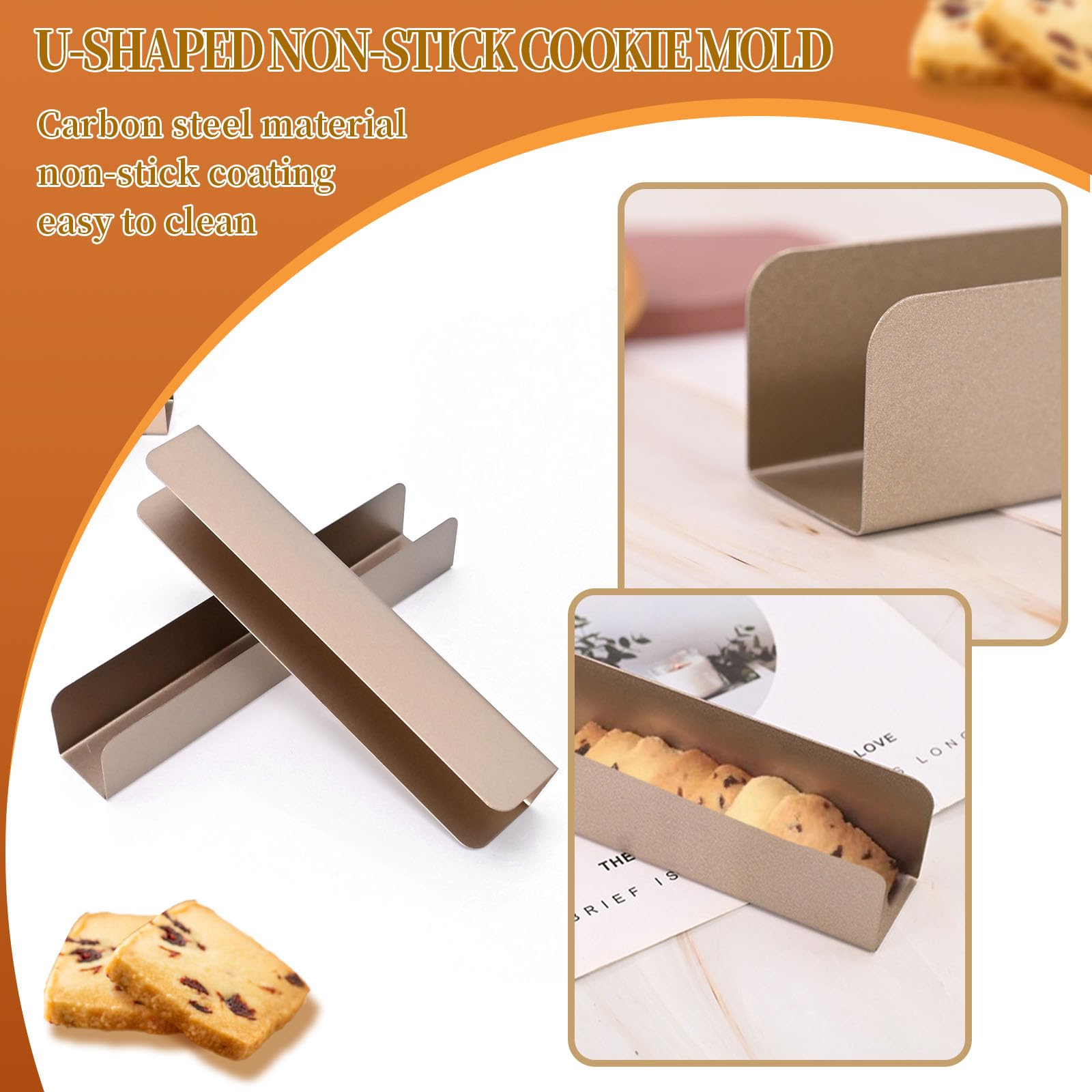 4PCS Cookie Cutter Long Non- Stick, Rectangle Cookie Cutters, Carbon Steel Cookie Mold, U Shape Biscuit Cake Bread Mold for Baking Fondant Baguette Dessert, 9.5"x1.8"x1.6"