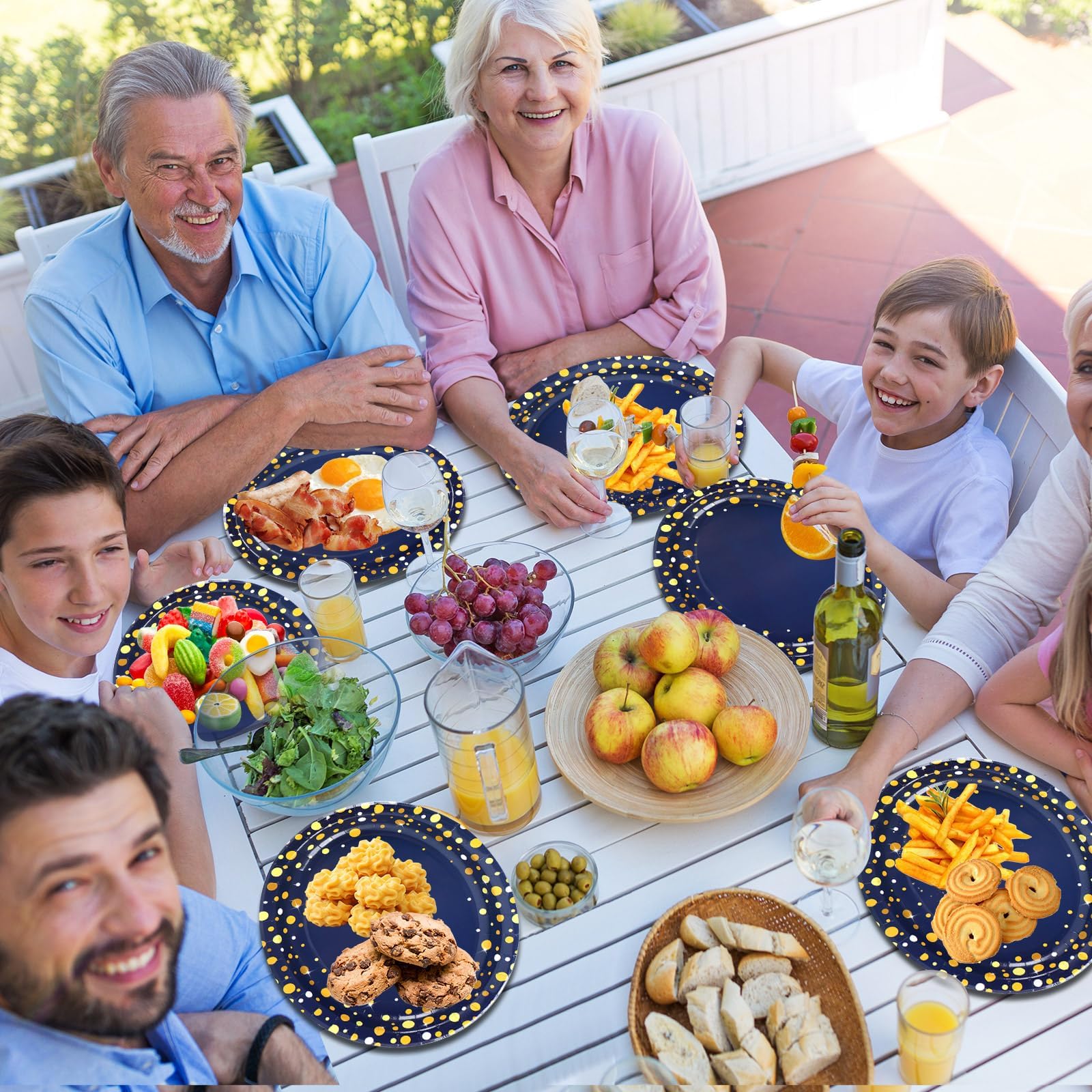 - Premium material: Made from thick, heat-resistant paper, these deep blue gold dot paper plates are durable enough to hold a variety of foods without bending or tearing, providing your guests with a pleasant dining experience.