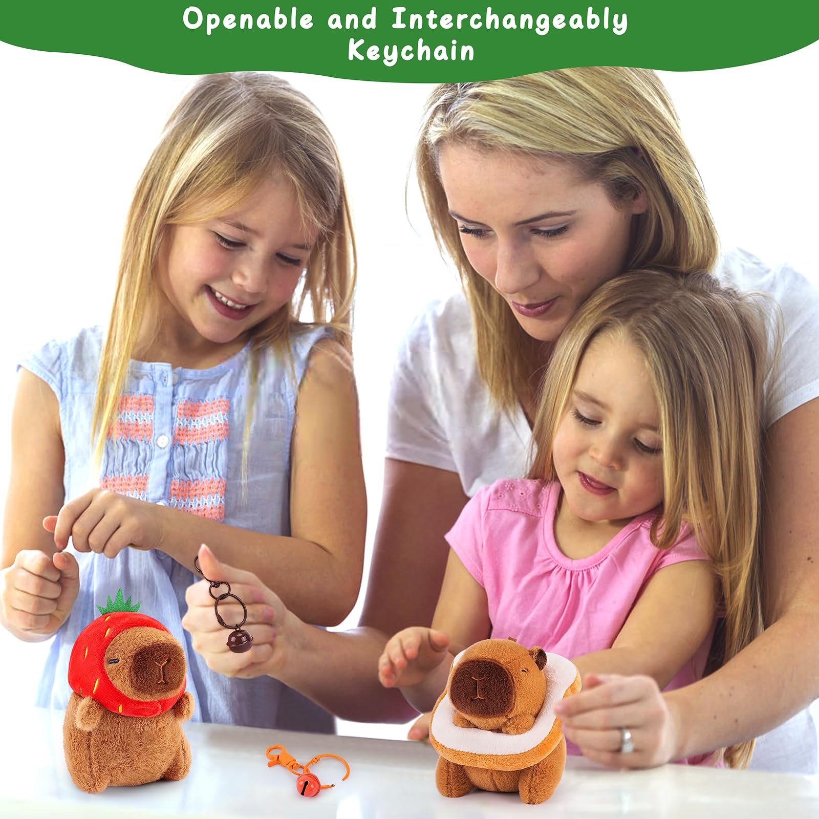 - 【Cute Capybara Plush Keychain Design】This is a set with 2 capybara decorated plushie keychain pendants inside. They are cute capybaras and ideal furry ornaments. A cute capybara wearing a strawberry hat and a capybara wearing a bread cicle can both be easily removed. Compact and portable, easy to carry.The keychain on the hat style capybara can be used interchangeably, it can be removed and hung on the capybara or on the hat, which is very convenient.
