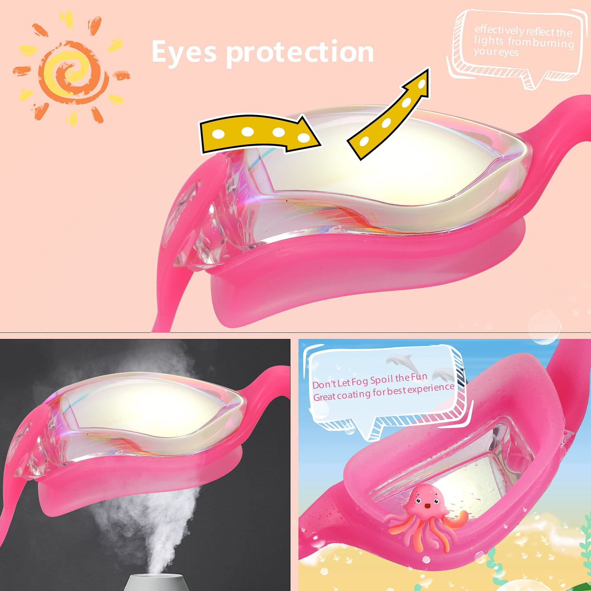 - No leak soft silicone - Let Aegend kids goggles protect your child on your behalf! Aegend newest kids swim goggles are made from soft silicone, which can relieve the pressure on the skin and also create a better seal to guard children against raccoon eyes. Super soft nose bridge would never hurt their nose, helping them enjoy the fun of water happily.