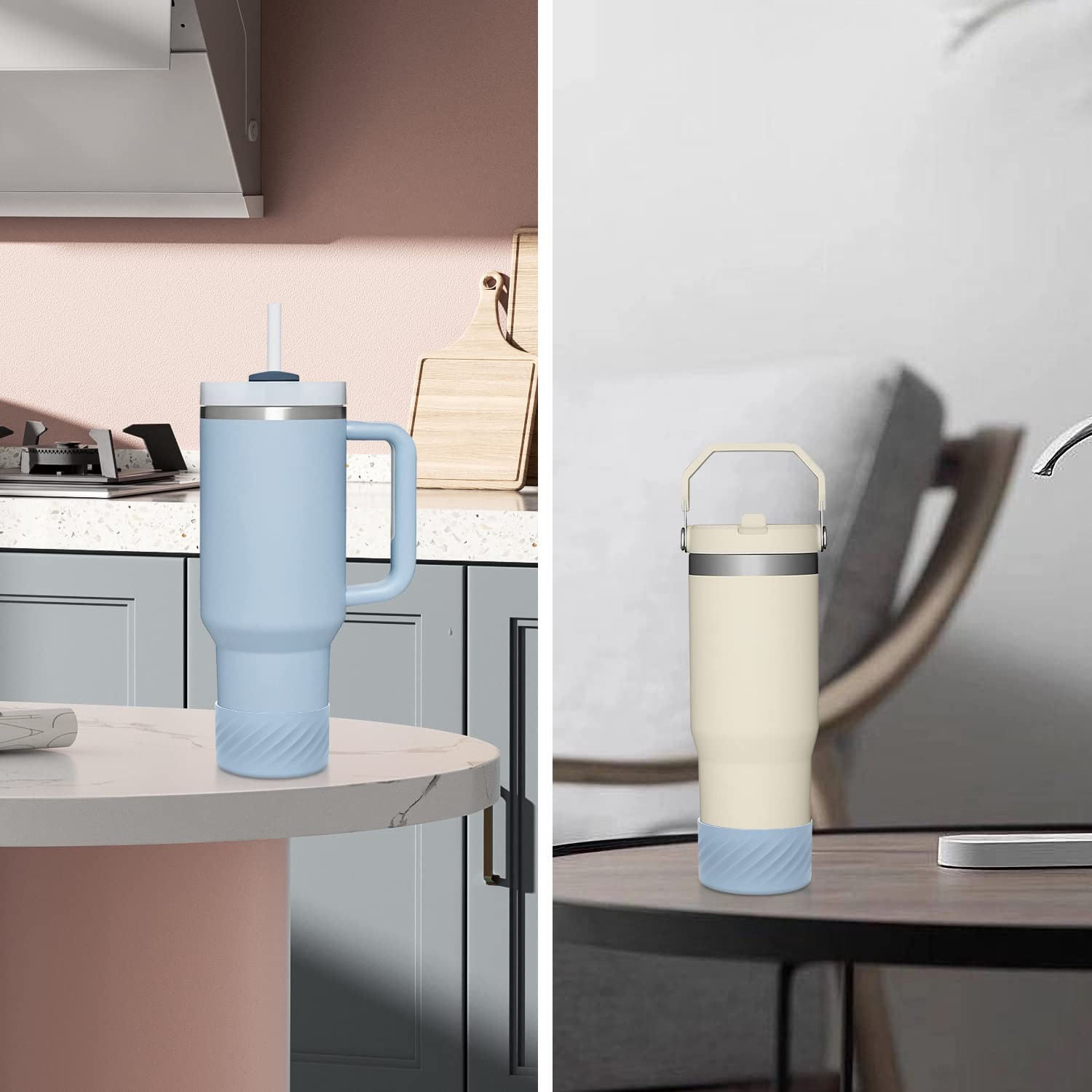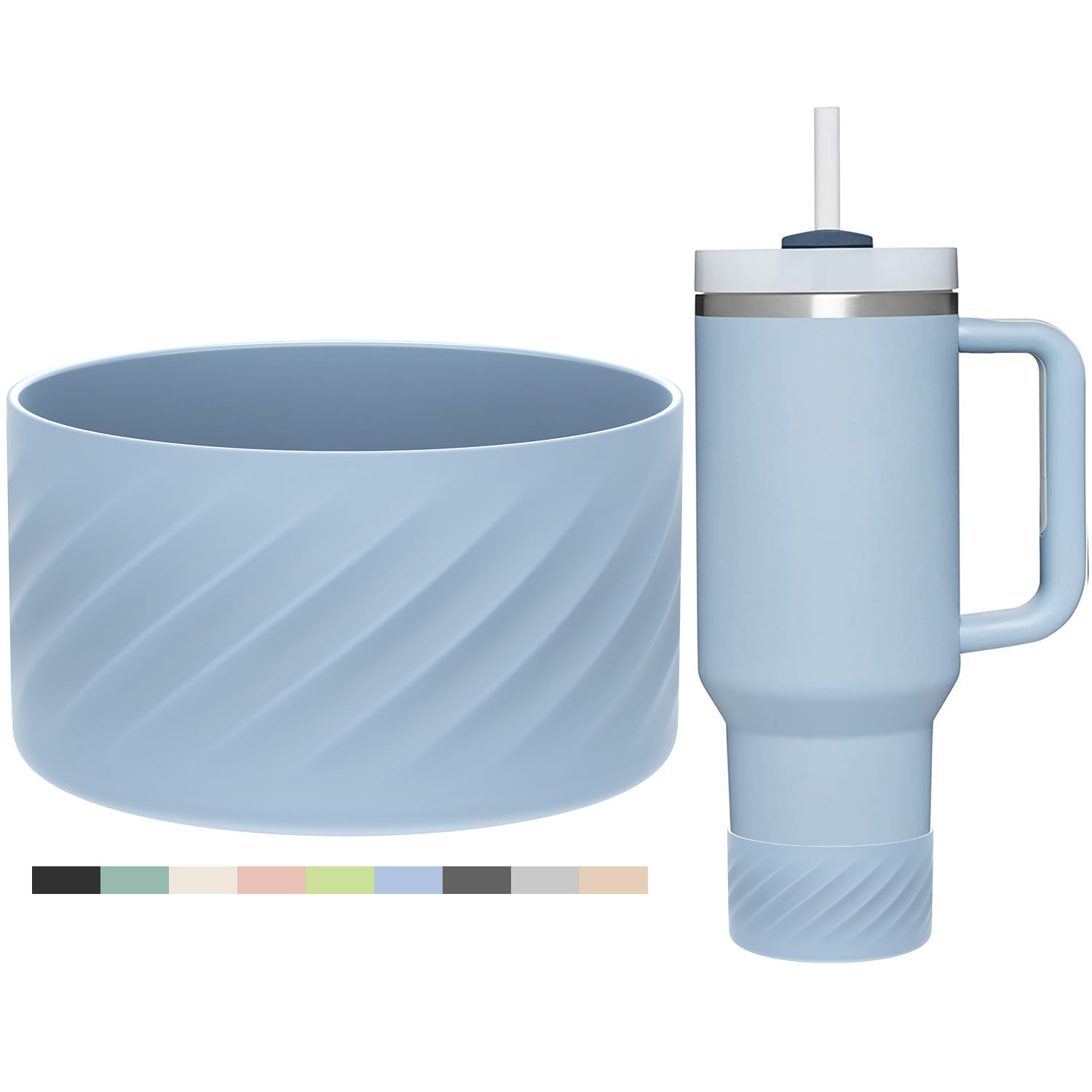 Affute Protective Silicone Boot for Stanley Quencher H2.0 40 oz & IceFlow Flip 20 oz 30 oz and hydroflask 12-24 oz, Anti-Slip Bottle Bottom Sleeve Cover (Chambray)