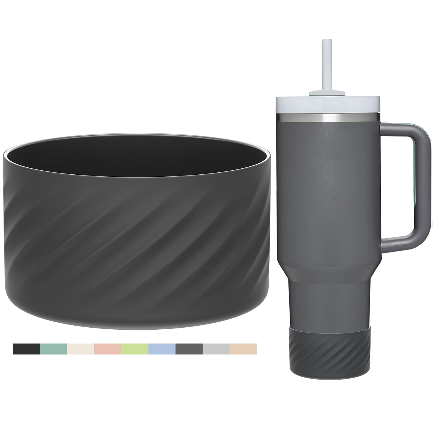 Affute Protective Silicone Boot for Stanley Quencher H2.0 40 oz & IceFlow Flip 20 oz 30 oz and hydroflask 12-24 oz, Anti-Slip Bottle Bottom Sleeve Cover (Charcoal)