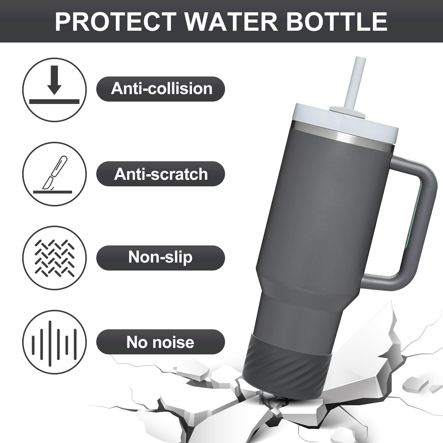 - ★PREMIUM MATERIAL — BPA FREE, Thickened, Anti-Slip, Anti-noise, This durable bottom boot helps protect against dents, dings and damage, Can effectively protect your expensive Stanley Cup.