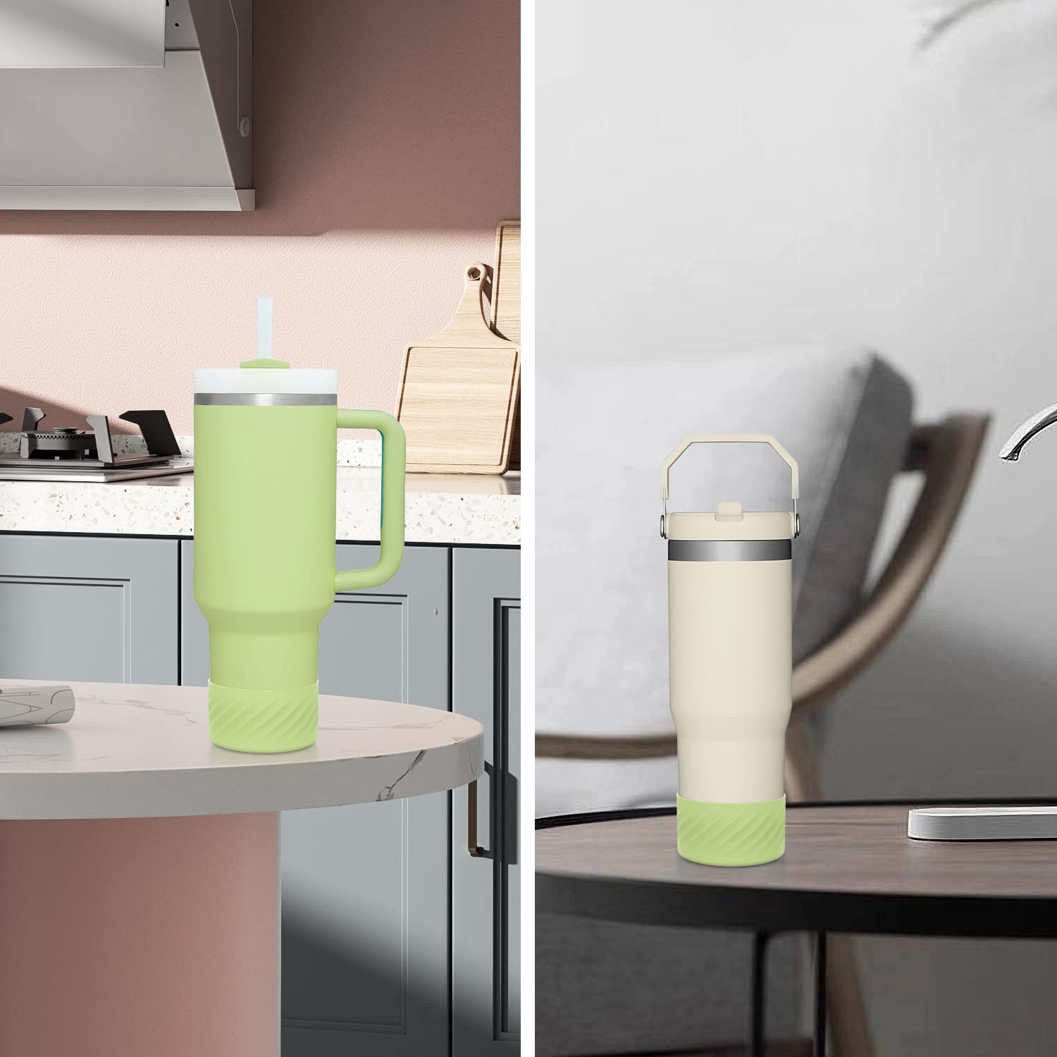 Affute Protective Silicone Boot for Stanley Quencher H2.0 40 oz & IceFlow Flip 20 oz 30 oz and hydroflask 12-24 oz, Anti-Slip Bottle Bottom Sleeve Cover (Citron)