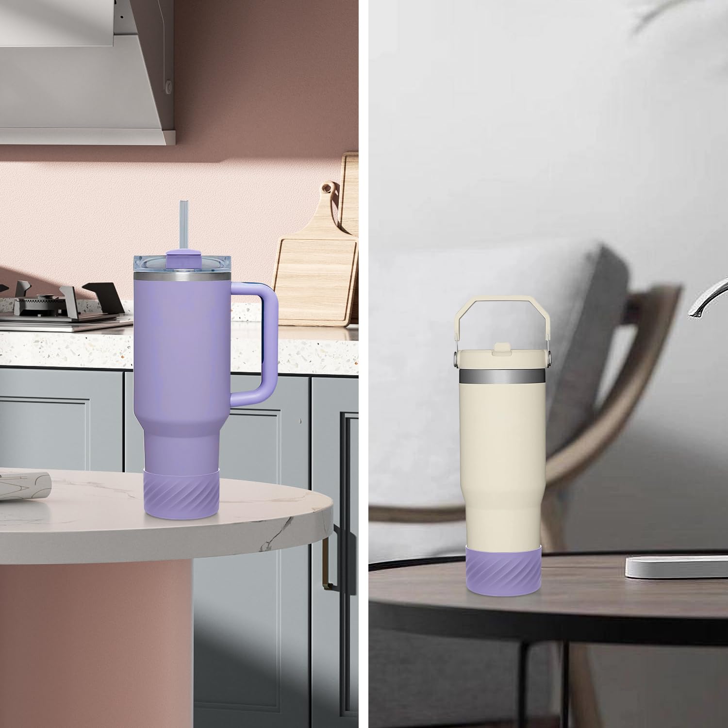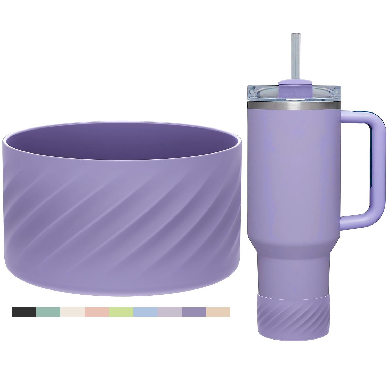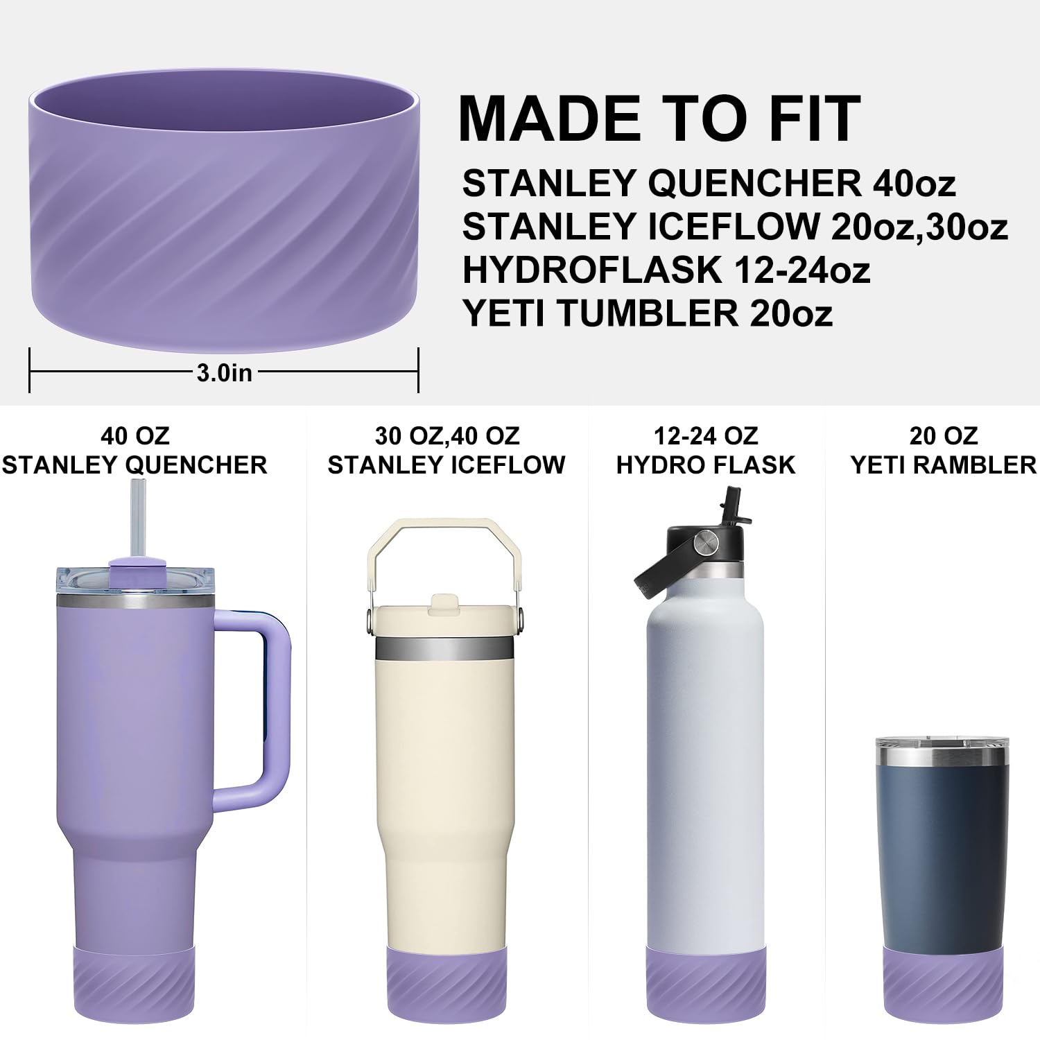 Affute Protective Silicone Boot for Stanley Quencher H2.0 40 oz & IceFlow Flip 20 oz 30 oz and hydroflask 12-24 oz, Anti-Slip Bottle Bottom Sleeve Cover (Lavender)