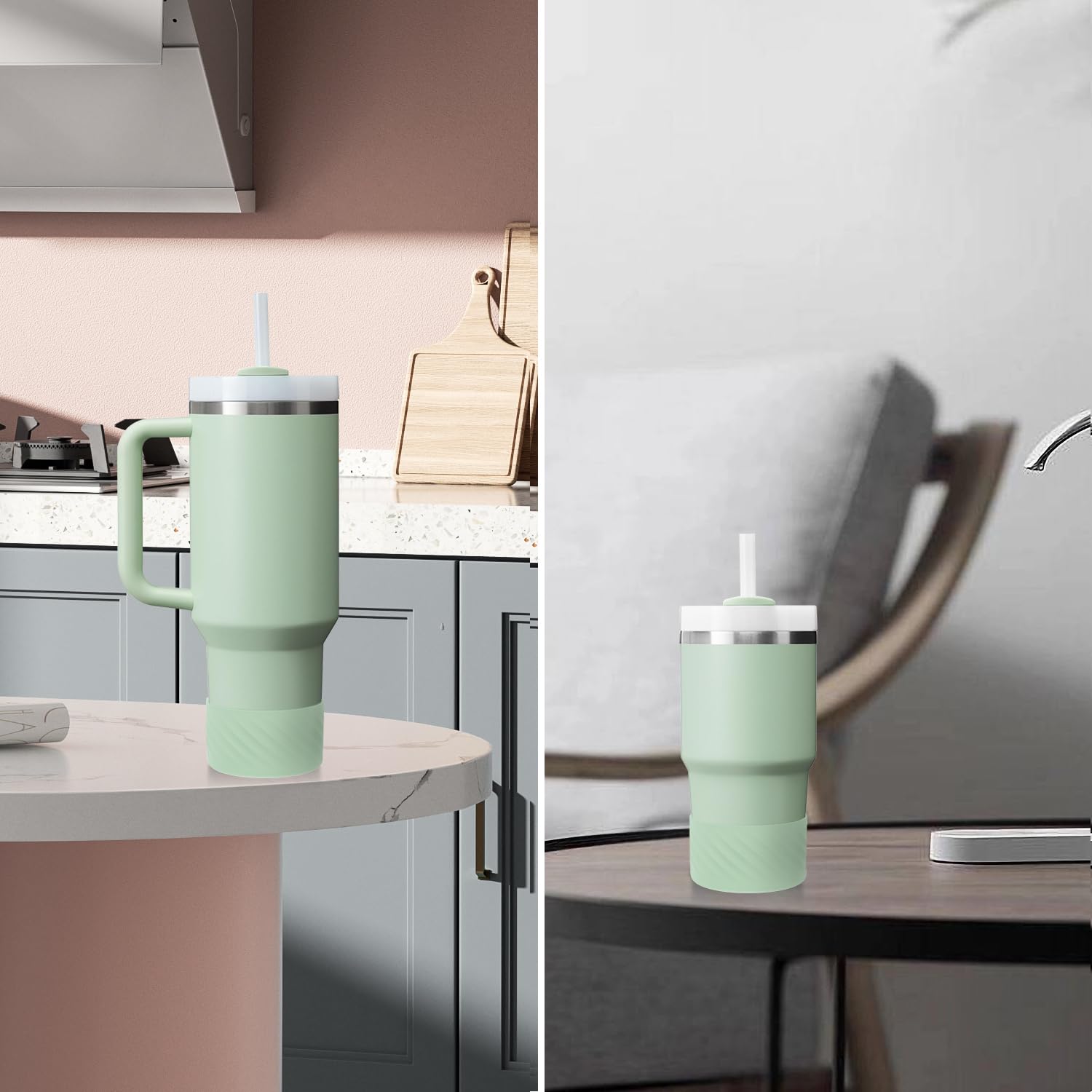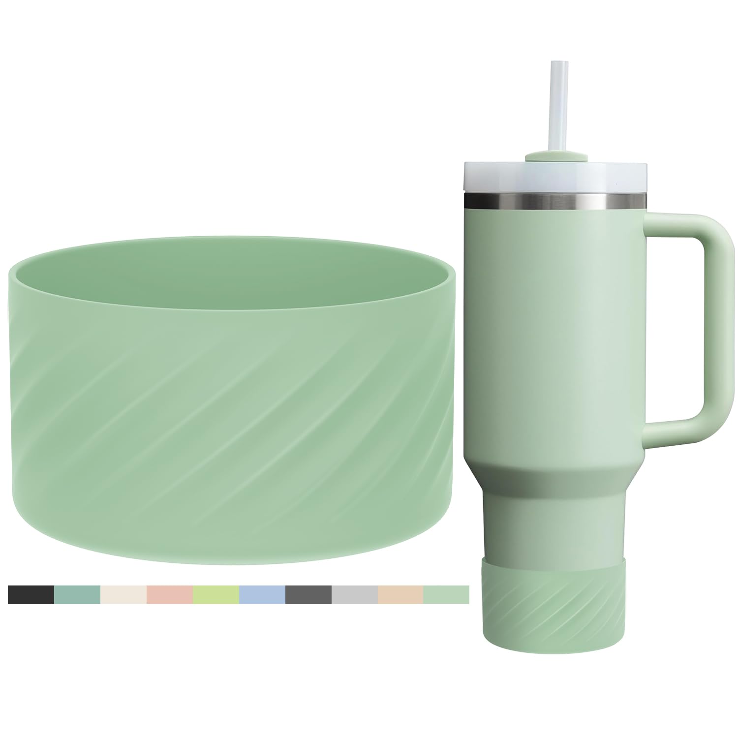 Affute Protective Silicone Boot for Stanley Quencher H2.0 40 oz & IceFlow Flip 20 oz 30 oz and hydroflask 12-24 oz, Anti-Slip Bottle Bottom Sleeve Cover (Matcha Cream)