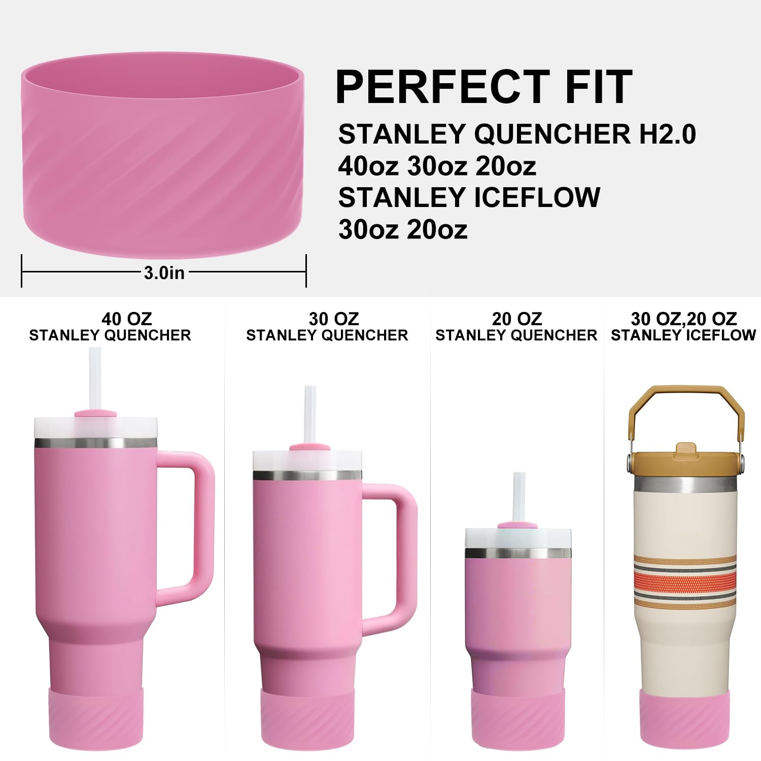 - ★PERFECT FIT — Our silicone boot is specially designed to fit Stanley The Quencher H2.0 40 oz, 30 oz, 20 oz tumblers, as well as Stanley IceFlow flip 30 oz, 20 oz water bottles.