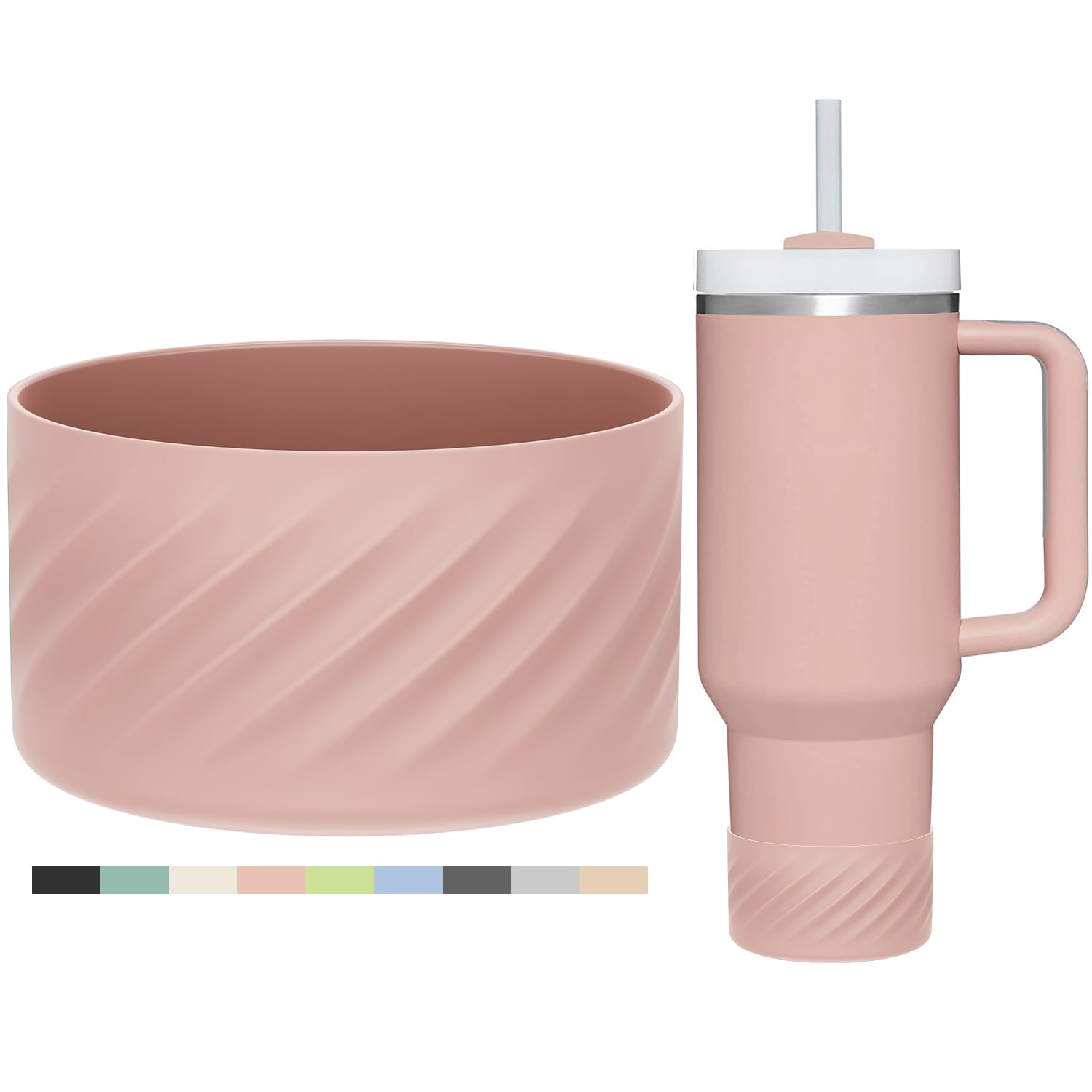 Affute Protective Silicone Boot for Stanley Quencher H2.0 40 oz & IceFlow Flip 20 oz 30 oz and hydroflask 12-24 oz, Anti-Slip Bottle Bottom Sleeve Cover (Pink Dusk)