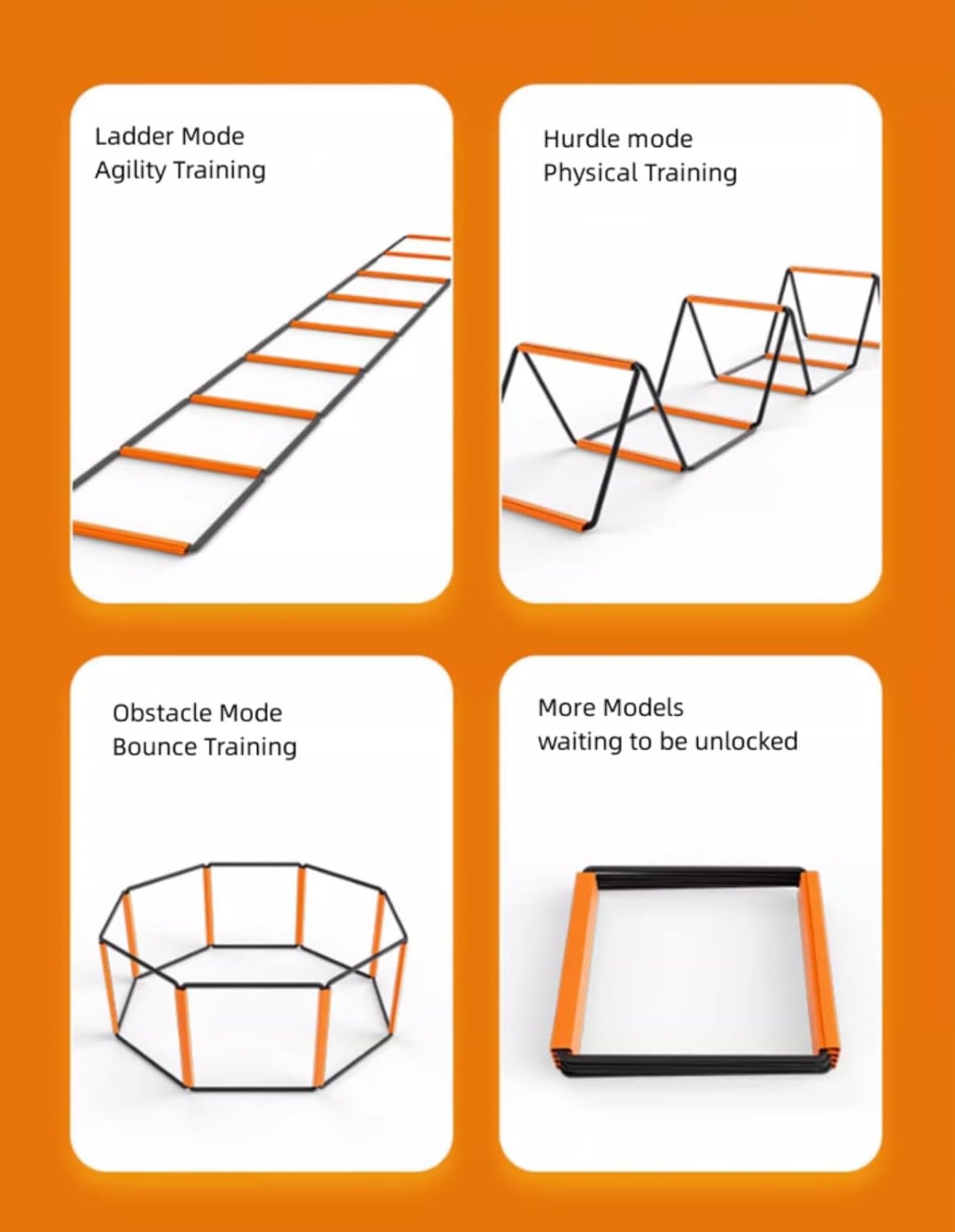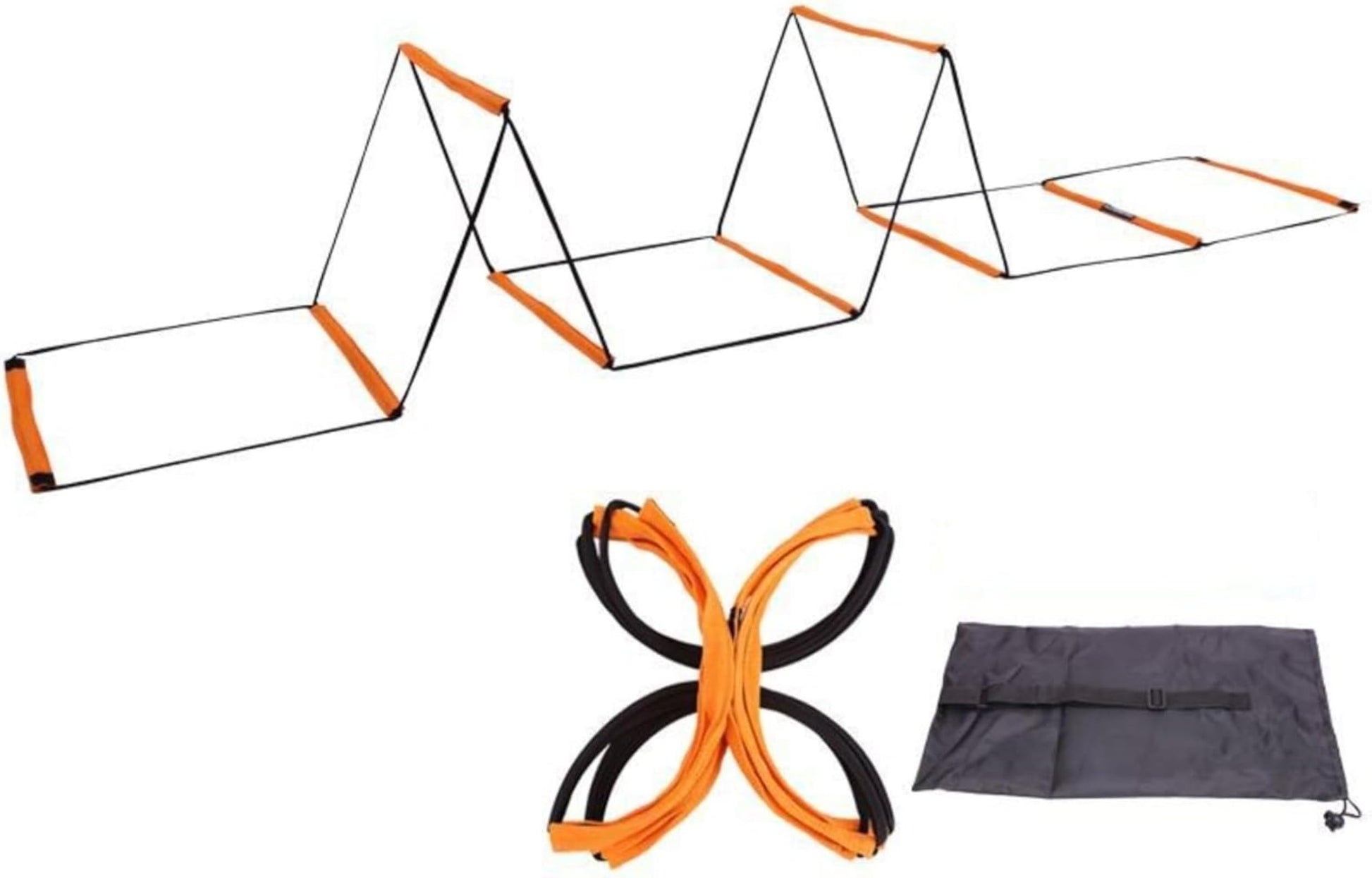 - SUPER EASY SET-UP: The Workout Ladder and Hurdles can be ready for action with a quick flick of the wrist. From bag to the field in less than 10 seconds, No more messy and twisted straps and tangled up rungs like other ladders. Storage is just as quick and easy, and the semi-rigid frame ensures that the Agility ladder and Agility Hurdles will never tangle in storage.