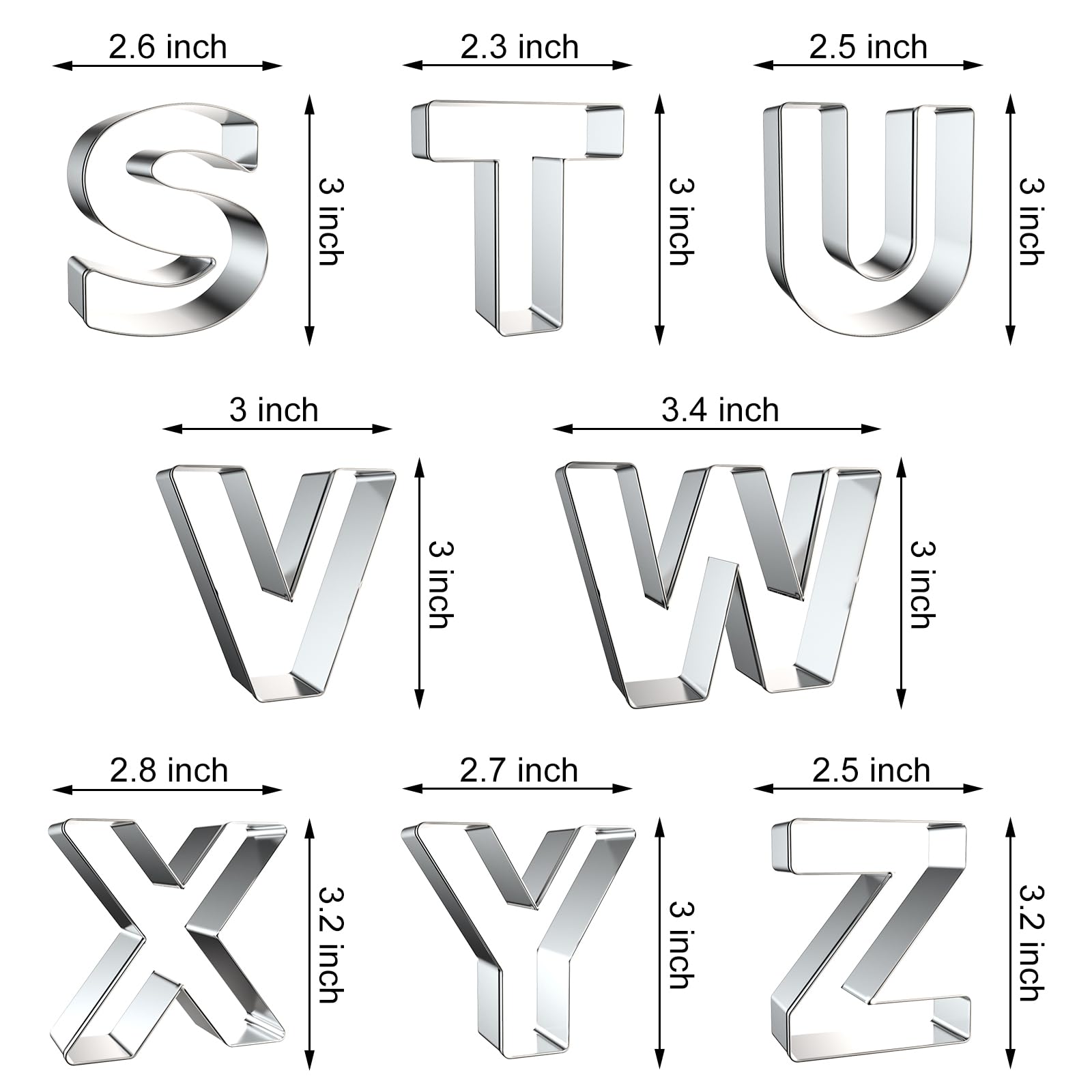 Alphabet Letter Cookie Cutters Shapes Large 3 Inch - 26 Pcs Stainless Steel Cookie Cutter Set Fondant Biscuit Fruit Dough Mold Tools for Birthday, Christmas, New Year and Holiday Party Decorations