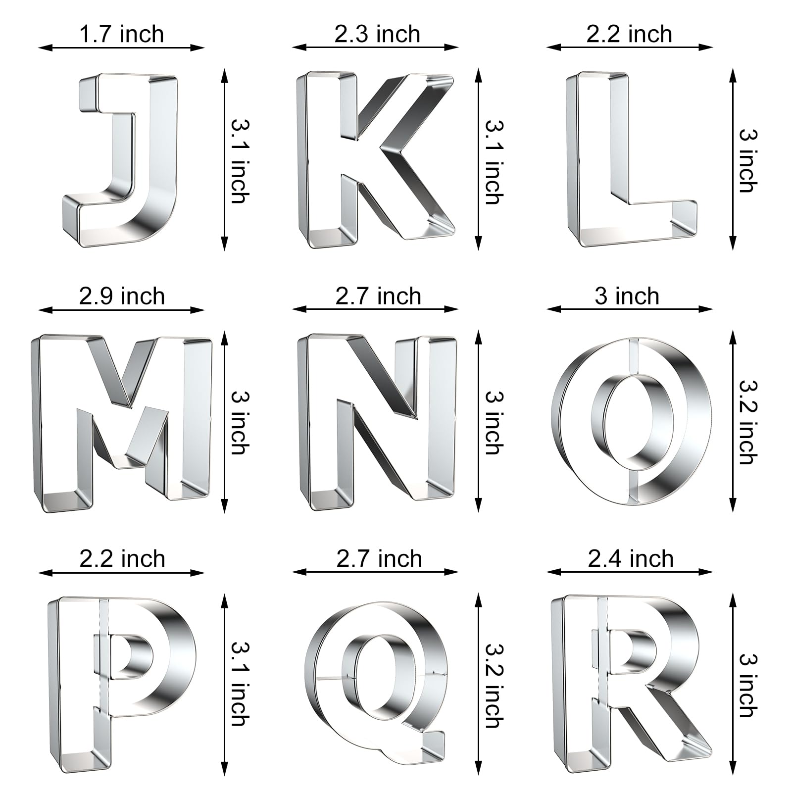 - ALPHABET LETTERS COOKIE CUTTER SET - This set of cookie cutters includes 26 capitalized letter shapes (A B C D E F G H I J K L M N O P Q R S T U V W X Y Z). It is perfect for any occasion! Birthdays, Valentine's Day, weddings, Easter, baby showers, Halloween, Thanksgiving, Christmas, holidays, anniversaries, you name it! Get ready to decorate cookies for your party with this funny set.