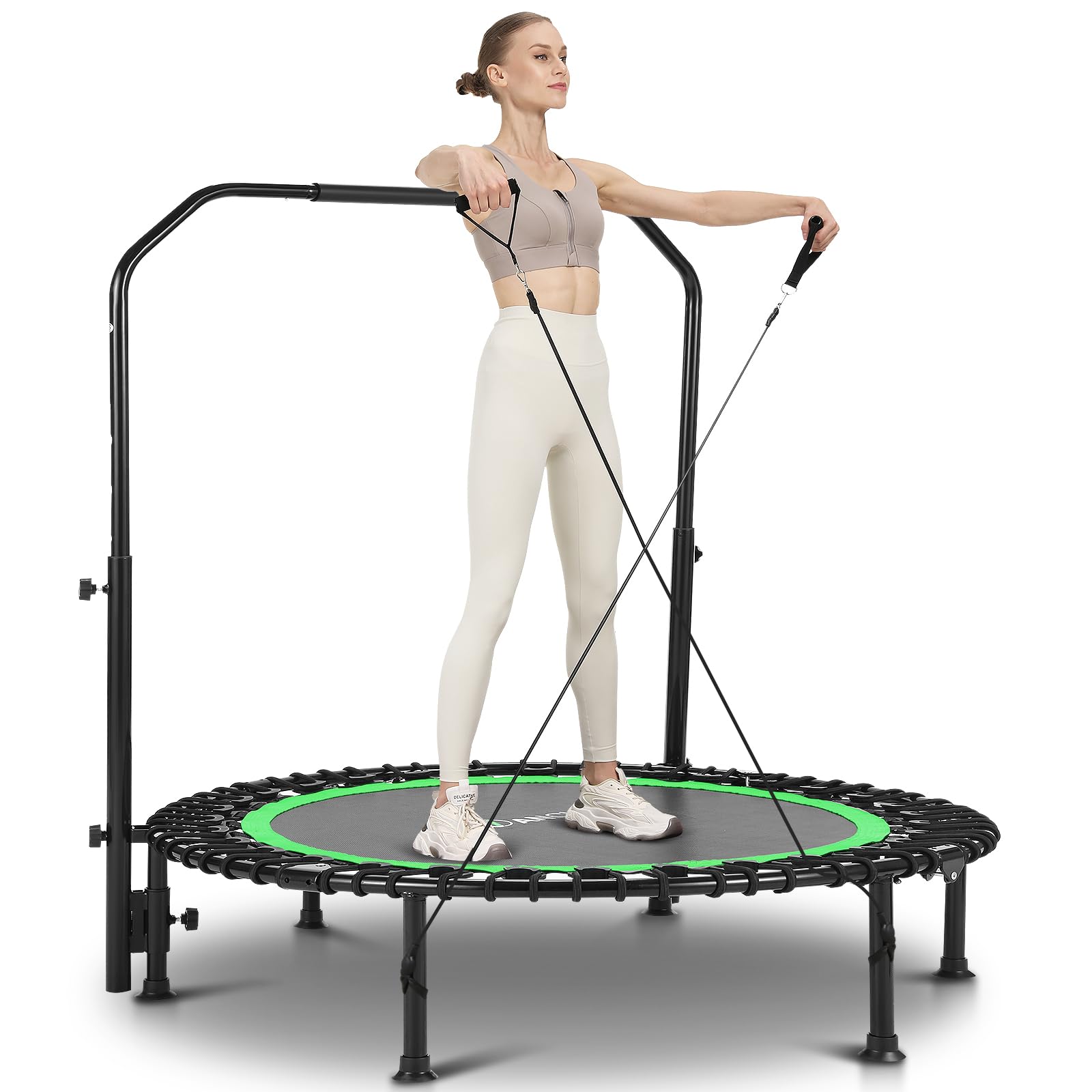 ANCHEER 40" Foldable Mini Trampoline Max Load 450lbs, Fitness Trampoline with Bungees, Adjustable Foam Handle, Indoor Exercise Trampoline for Adults Inoor/Garden Workout