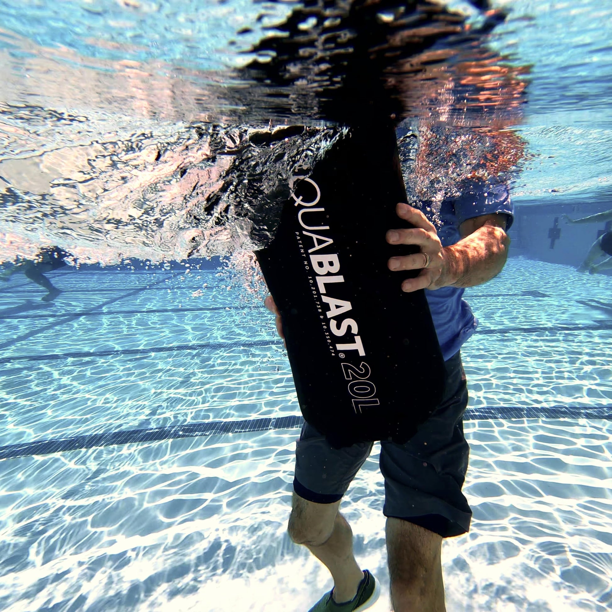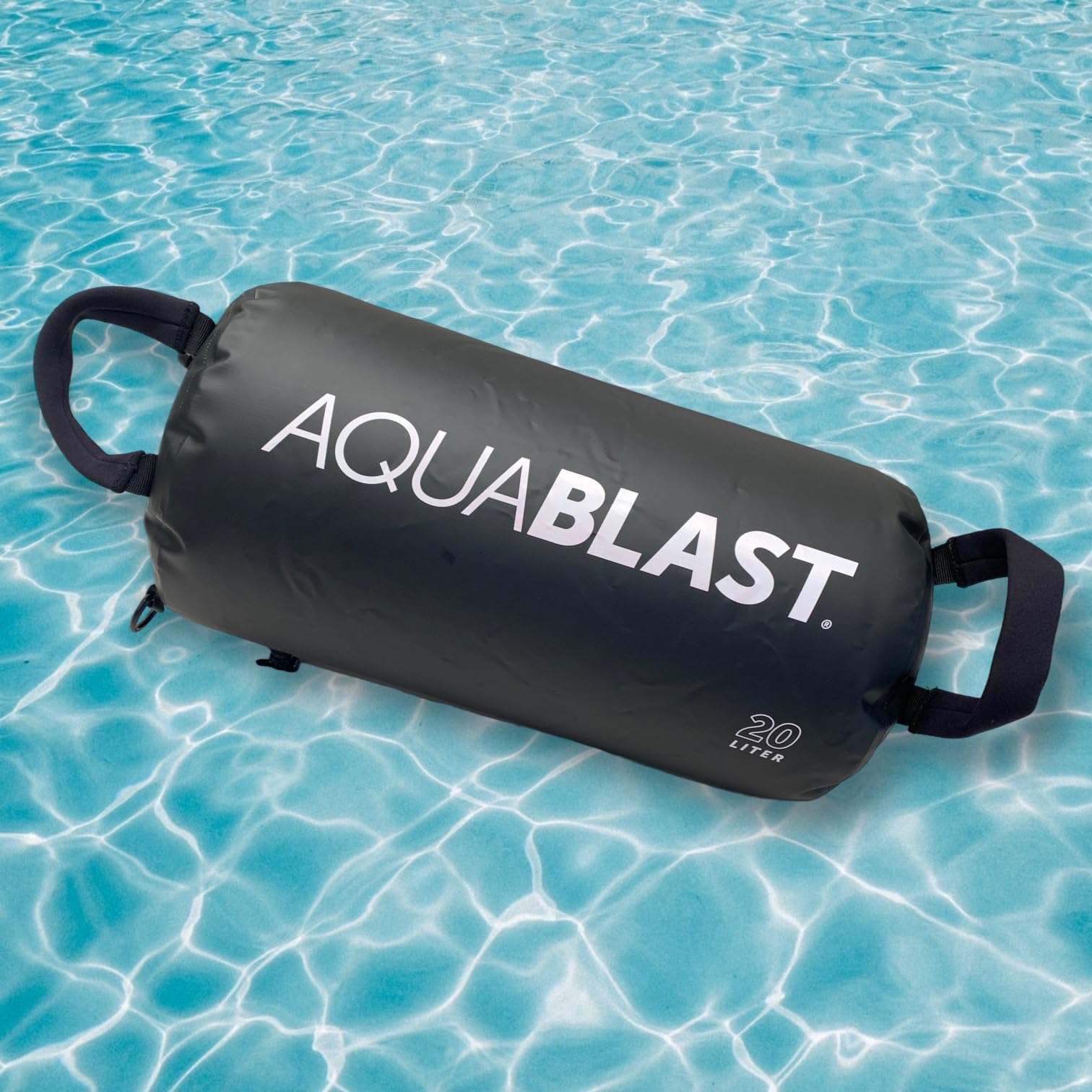 - Portable and Compact Water Fitness Equipment: AquaBLAST sets up in seconds and holds up to 20 liters (5 gallons) of pool water. It fits in a convenient carry case, so you can take it with you on vacation, to the gym, and on business trips — anywhere there is a pool. Up your game with swimming pool fitness equipment and harness the the power of water resistance and weight in a single device.