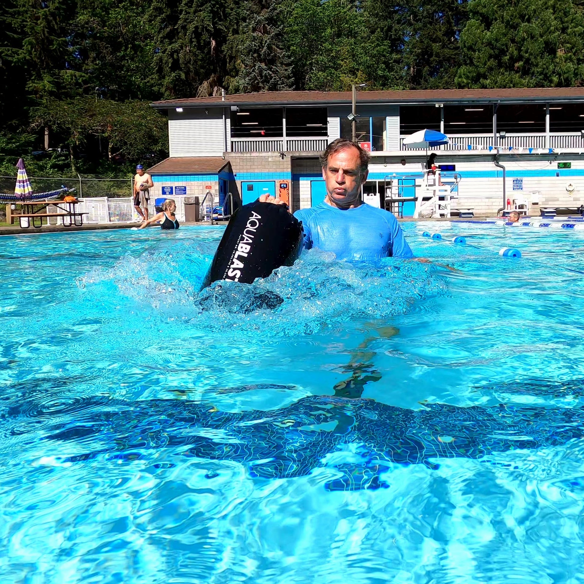 - Push, Pull, lift and throw AquaBLAST for a total body workout, or go full ninja kickboxing in 3-5 feet of water.