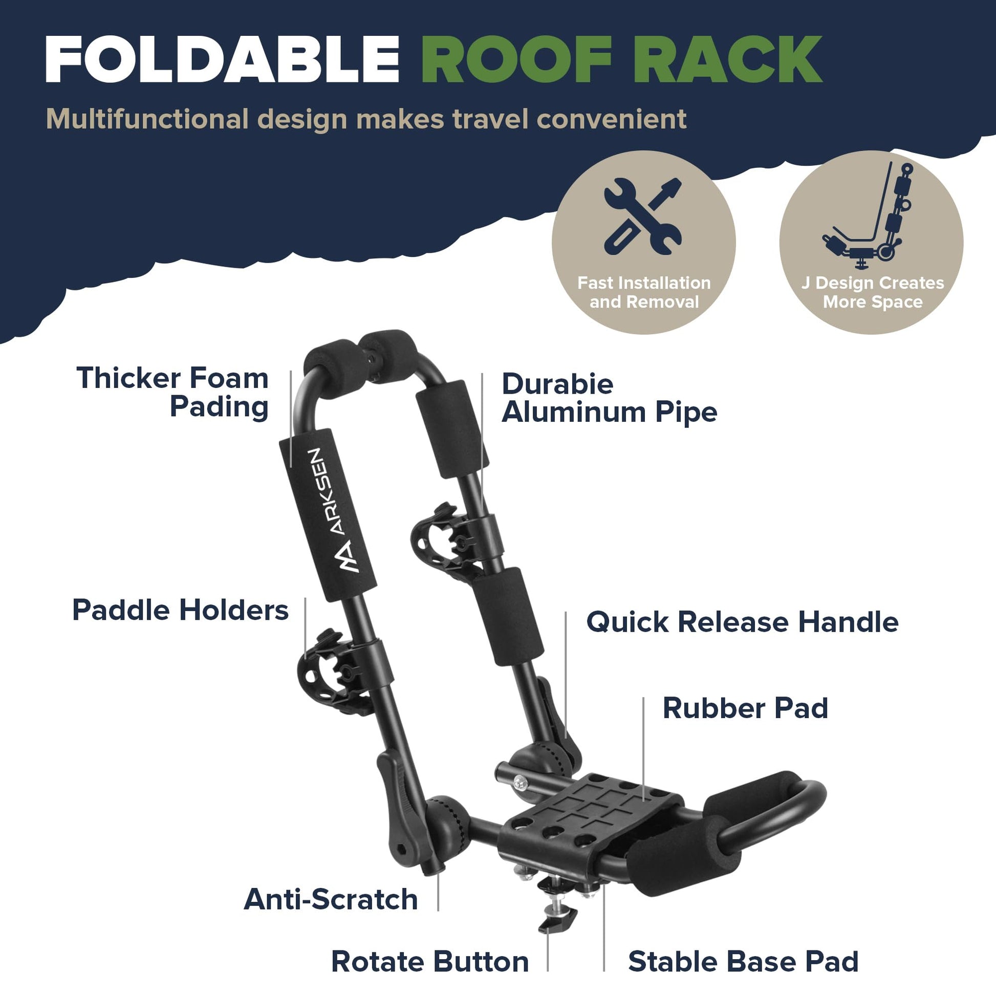 Arksen Universal 2 Pairs Heavy Duty Kayak Roof Rack J-Bar Easy to Carry Canoe Top Folding Adjustable Accessories for Car SUV Truck Crossbar with 4 pcs Top Mount Racks for Trip