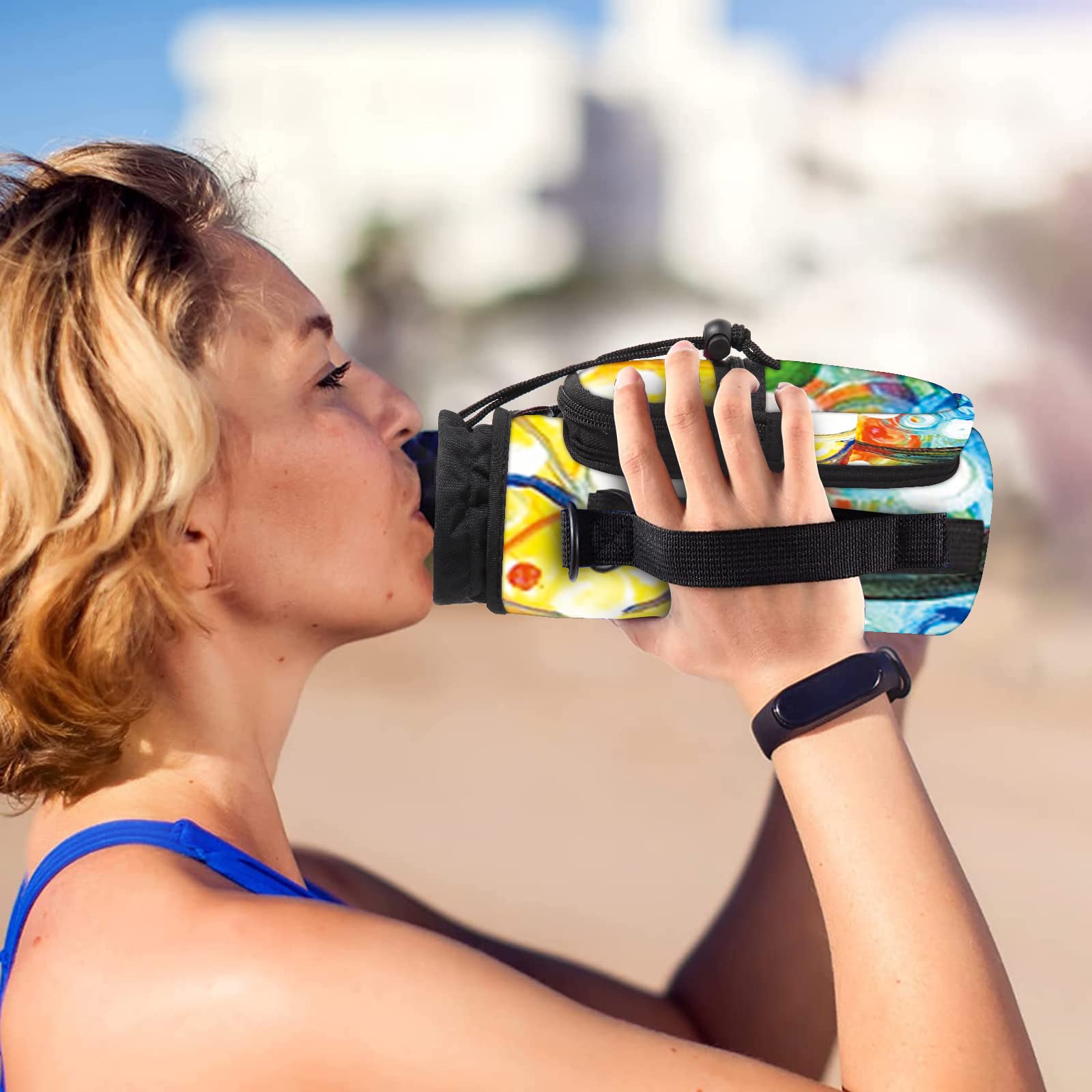 AUPET Water Bottle Sling Bag Sleeve Holder Carrier 25/32/40/64 oz,Insulated Crossbody Water Bottle Case Cover with Strap and Pockets for Men/Women Walking Hiking Camping (25oz, colorful tree)