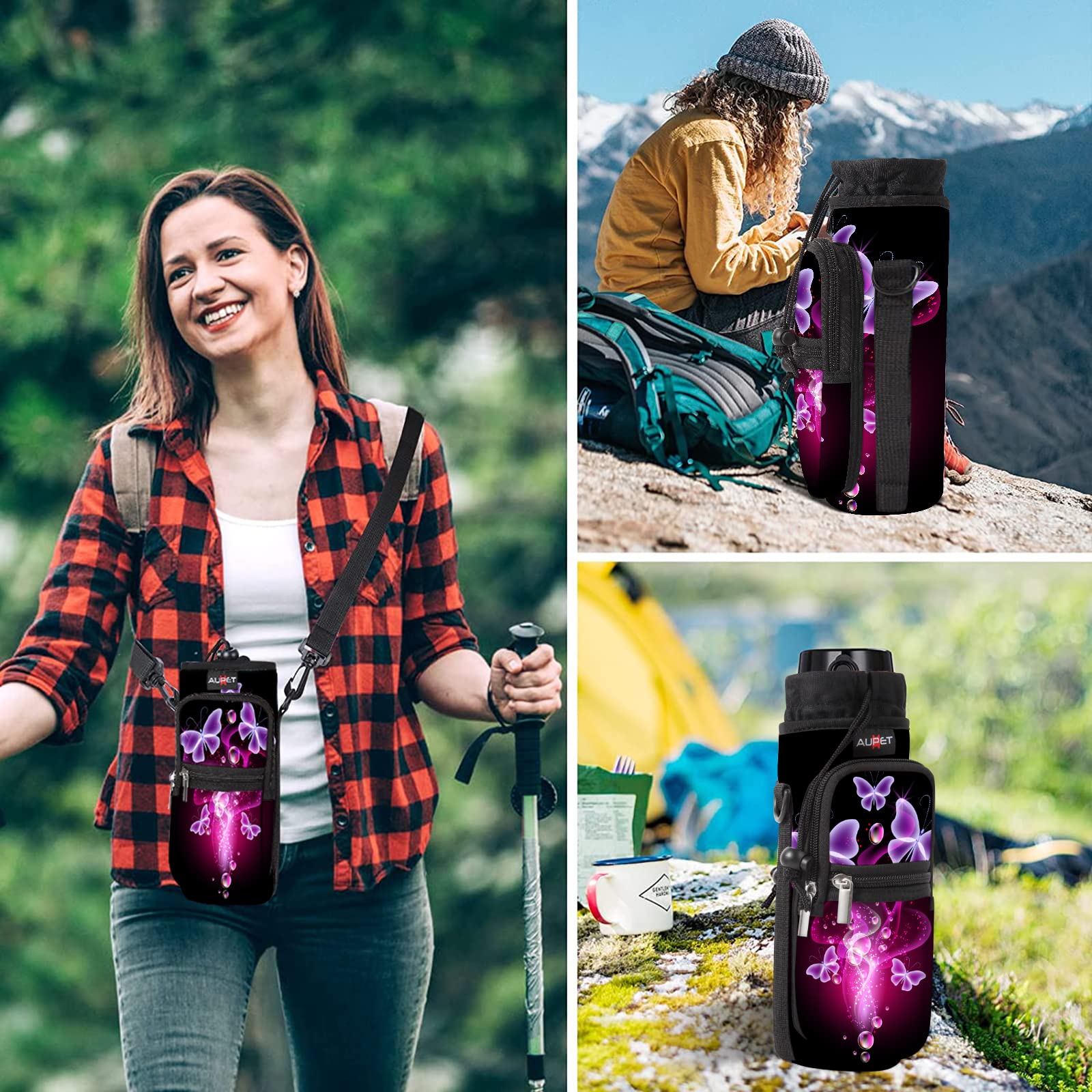 - GREAT FOR TEENS & ADULTS: Both adults and Kids can find great use in this AUPET water bottle carrier holder. Use it for walking,running,gym,cycling,hiking and more.with two zipper pockets for smartphone,cash,card keys and other small items.with the adjustable shoulder strap and the carring strap,it will fits all body types,you can wear over the shoulder, cross chest as a sling bag or just hand carring.