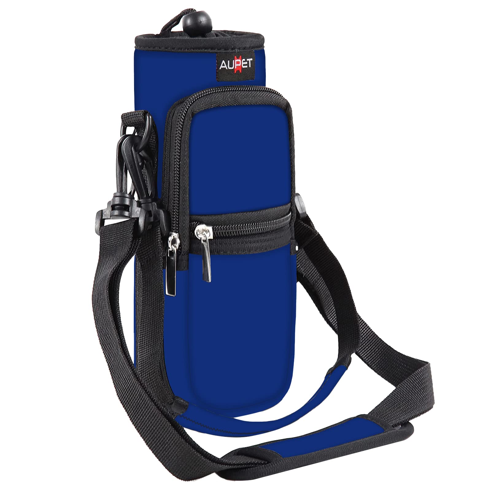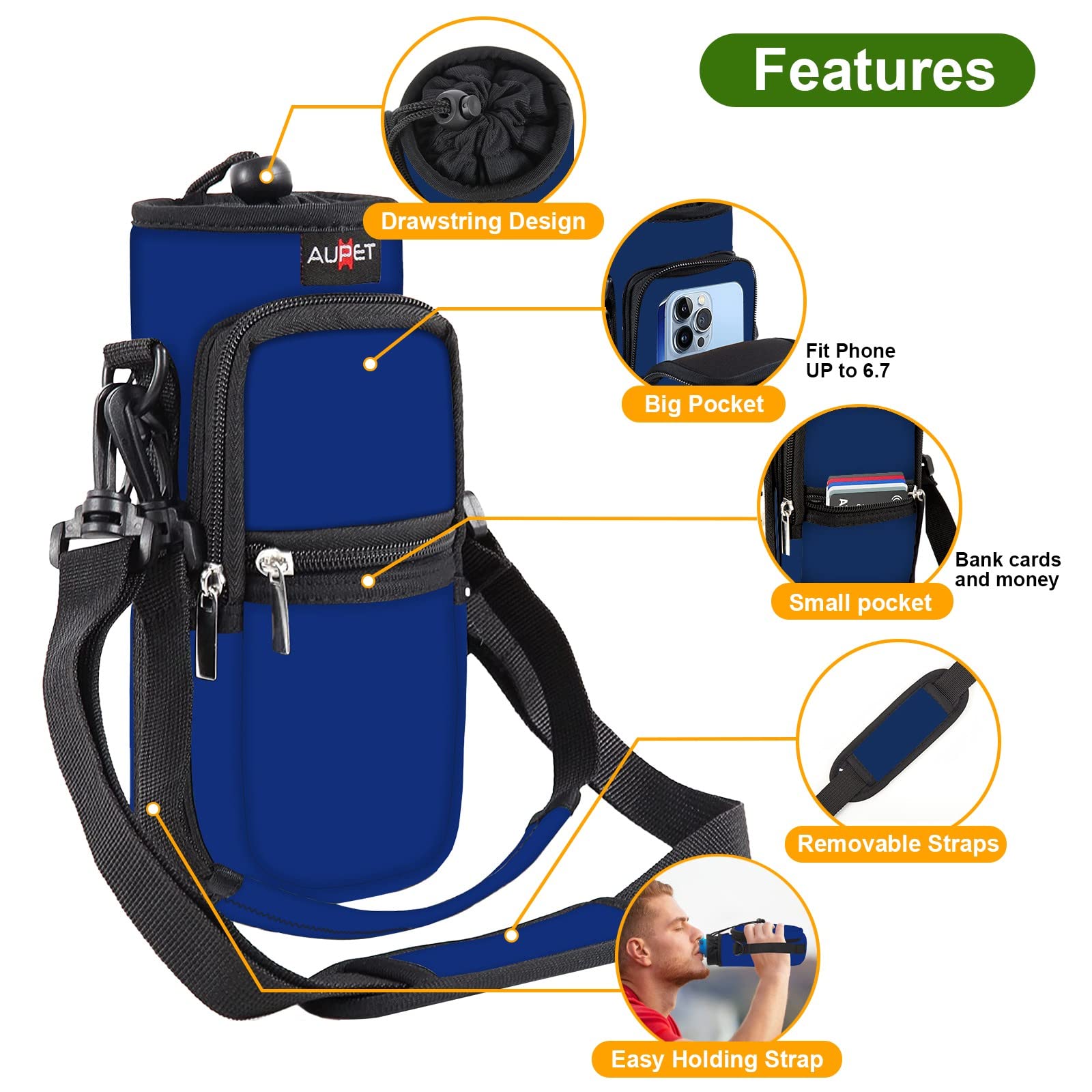 - GREAT FOR TEENS & ADULTS: Both adults and Kids can find great use in this AUPET water bottle carrier holder. Use it for walking,running,gym,cycling,hiking and more.with two zipper pockets for smartphone,cash,card keys and other small items.with the adjustable shoulder strap and the carring strap,it will fits all body types,you can wear over the shoulder, cross chest as a sling bag or just hand carring.