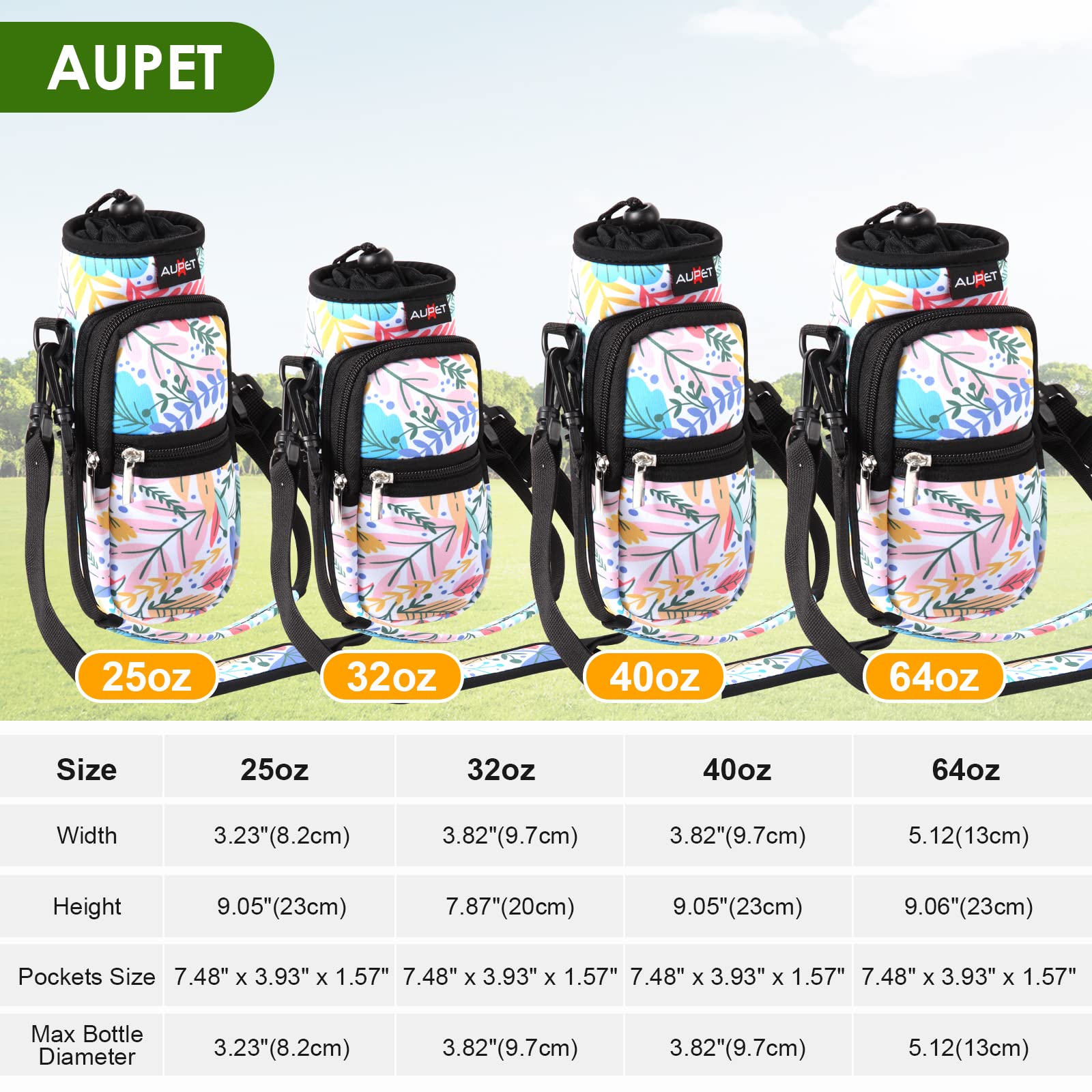 - AVAILABLE IN FOUR SIZES:Our AUPET water bottle crossbody bags has four sizes for you to choose,25oz/32oz/40oz/64oz,please refer to the picture to choose the right size