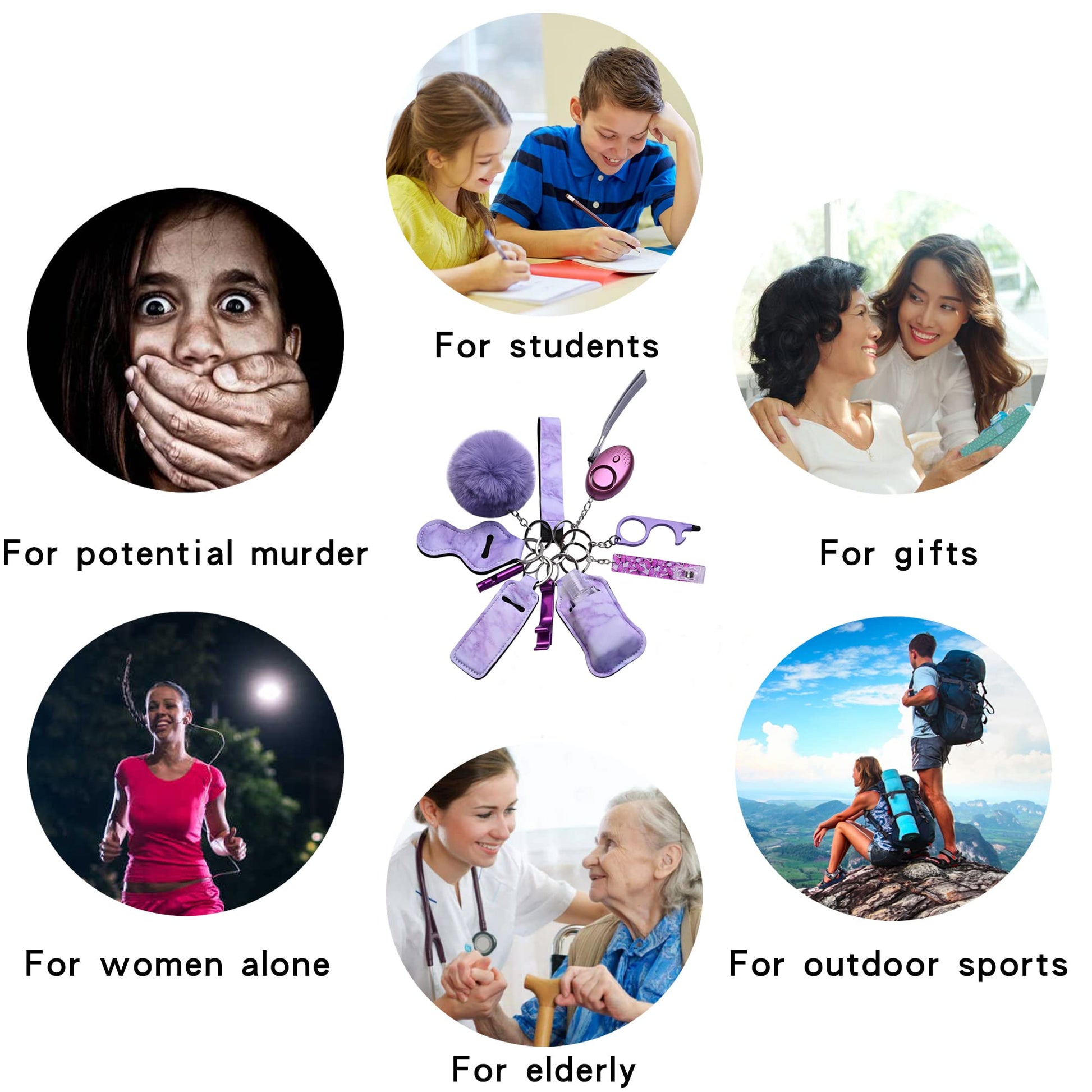 - Self-Defense Keychain Set: Easy to carry and easy to hang in the bag, this is a perfect gift, practical and stylish, a beautiful gift can make her feel safe and get inner peace. Safety Keychains Could Help Save Your Life or the Life of Someone You Love. Cute Safety Keychain That Can Alert Someone of an Attack or Even Free You From Being Trapped in a Car With a Jammed Door.