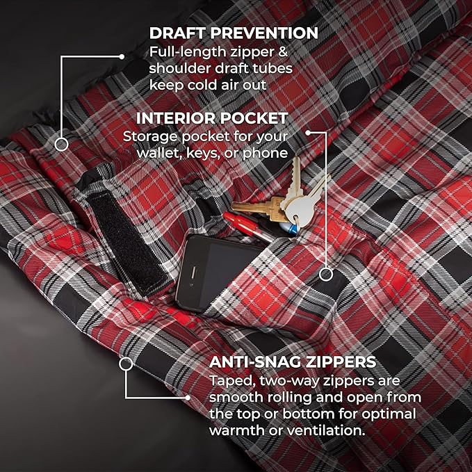 - SLEEP COMFORTABLY: You'll forget you're camping with these comfortable sleeping bags! With a soft poly-flannel lining and plenty of room to spread out. The half-circle mummy-style hood keeps you warm and your pillow clean, unzips on each side