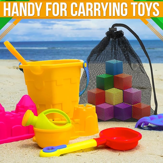 - 🟠Premium Quality Net Bags: Our premium mesh beach bag, crafted from high-quality nylon, ensures durability and long-term use. Lightweight and easy to carry, it's perfect for storing your gear.
