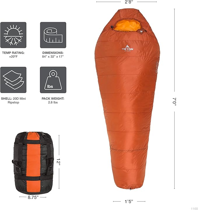 TETON Sports ALTOS, 20 Degree and 0 Degree Sleeping Bag for Adults, Lightweight Warm Mummy Sleeping Bag for Camping, Hiking, Backpacking