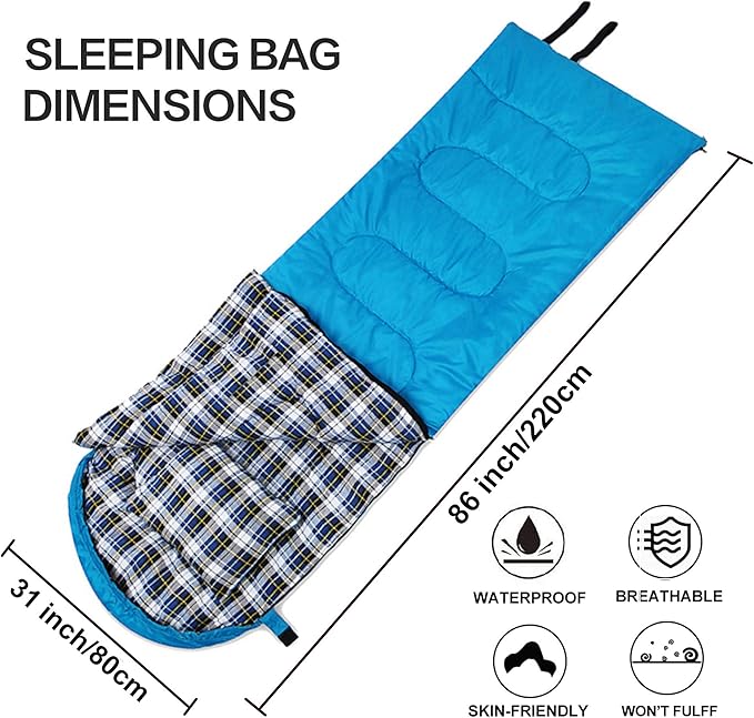 Desert & Fox Cotton Flannel Sleeping Bags with Pillow, 4 Season Warm & Cold Weather Envelope Compression Sack, Lightweight & Portable Backpacking Sleeping Bag for Outdoor Camping, Hiking, Traveling