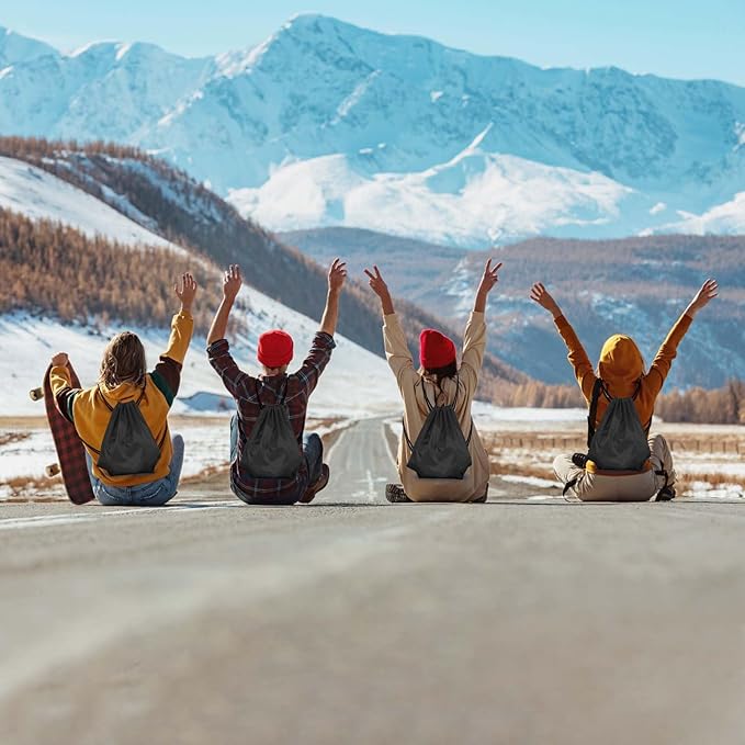 KUUQA 12 Pcs Drawstring Backpack Bags Sport Gym Sack Cinch Bags Bulk for School Traveling and Storage (Black)
