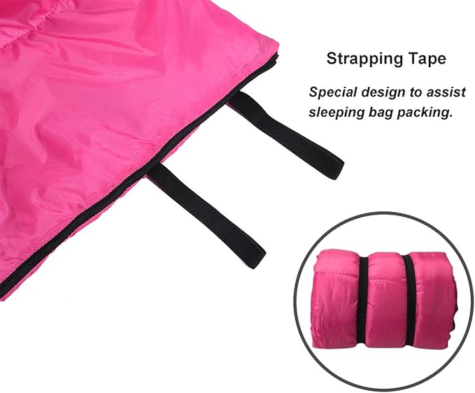 - Small Space,Easy to Carry --- This sleeping bag has its own compression bag, which has two tightable strips. Press bag and fixed by two strips, the volume will reduce 2 times than before. After compression, sleeping bag can put in backpack or hang on backpack suspension system.