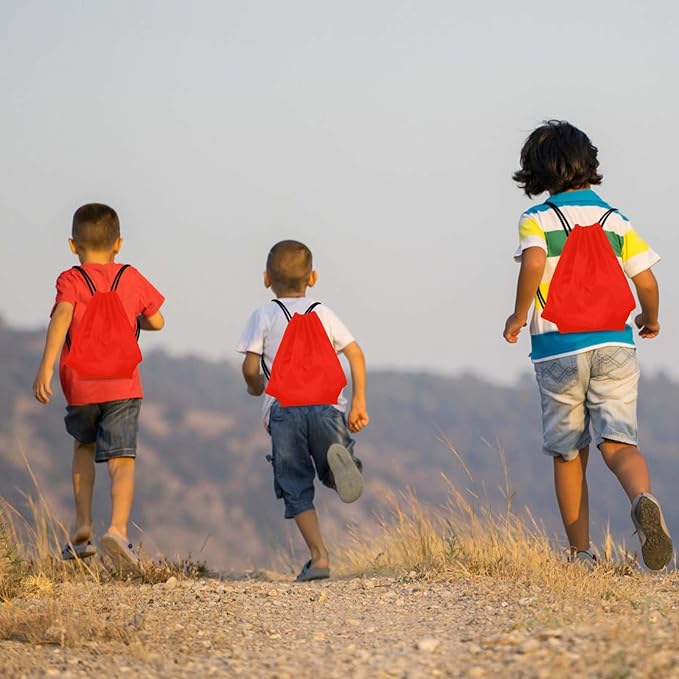 KUUQA 12 Pcs Drawstring Backpack Bags Sport Gym Sack Cinch Bags Bulk for School Traveling and Storage (Red)