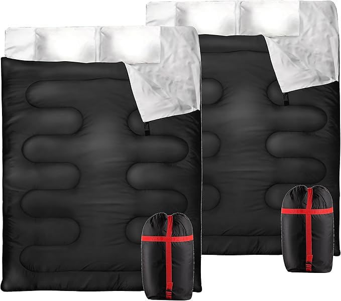 Zone Tech Double Camping Sleeping Bag with 2 Pillows – 3-4 Season Lightweight Waterproof Warm & Cool Weather Adult & Kids Sleeping Bag Converts into 2 Single -Camping, Hiking, & Outdoors
