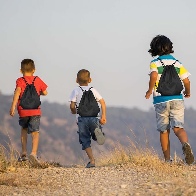 KUUQA 50Pcs Black Drawstring Backpack Bag Sack Drawstring Bags Bulk String Bags Storage Bags for Sport Gym Traveling